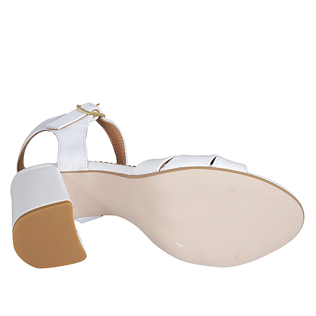 Sandalo da donna in pelle bianca con cinturino tacco 7