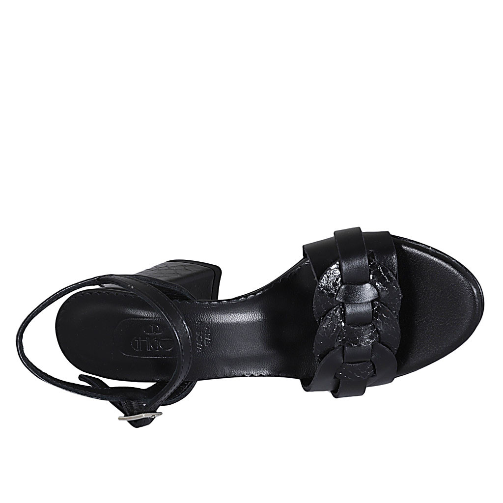 Sabot da donna in tessuto corda nera con strass, plateau e zeppa 7