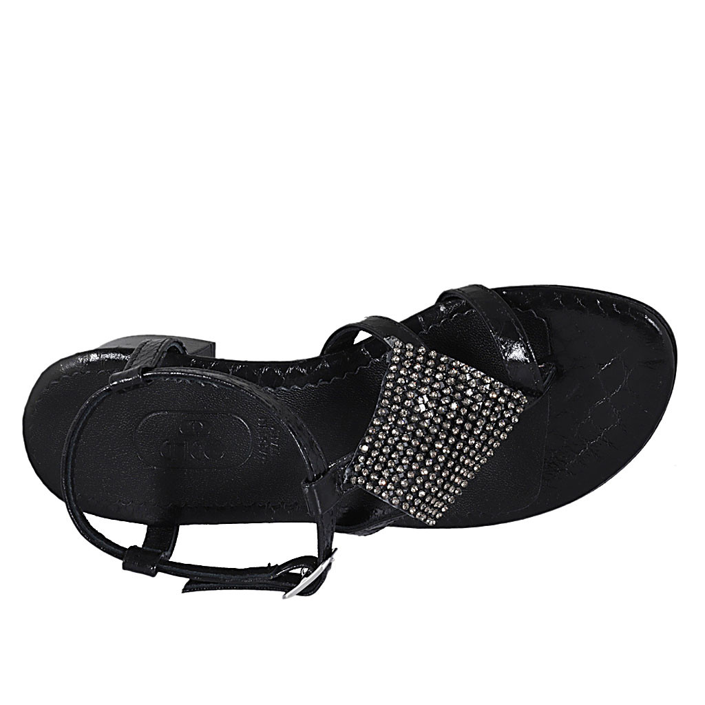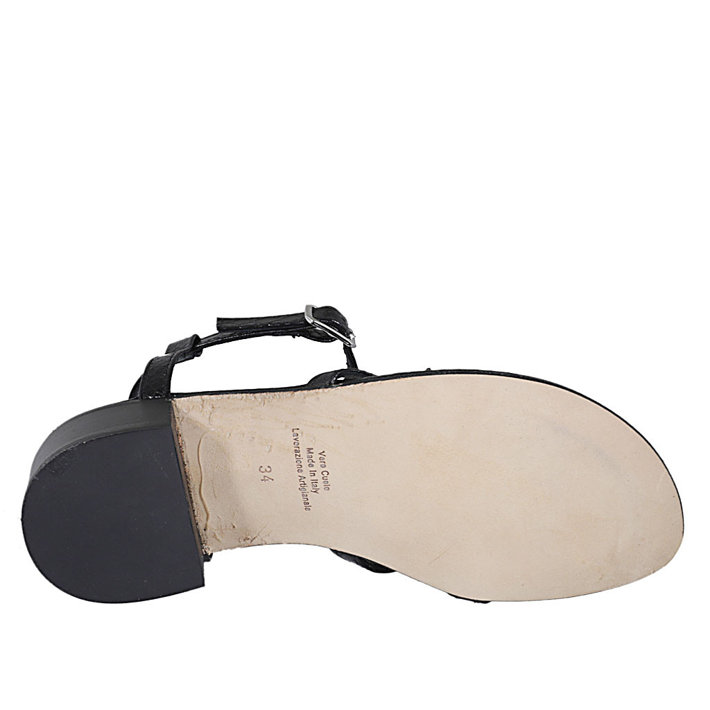 Sandalo con cinturino da donna in pelle nera e rosa zeppa 6