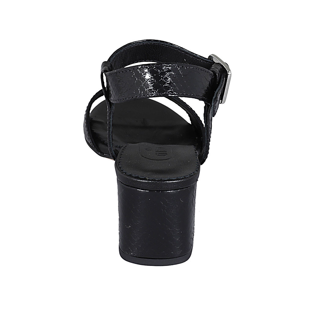 Sandalo da donna in vernice stampata nera con cinturino tacco 5