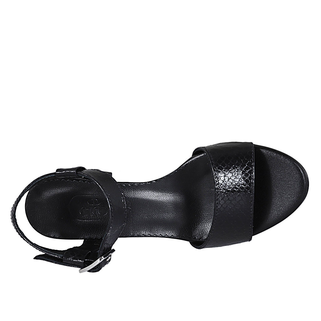 Sandalo da donna in vernice stampata nera con cinturino tacco 5 - Misure disponibili: 31, 43, 44