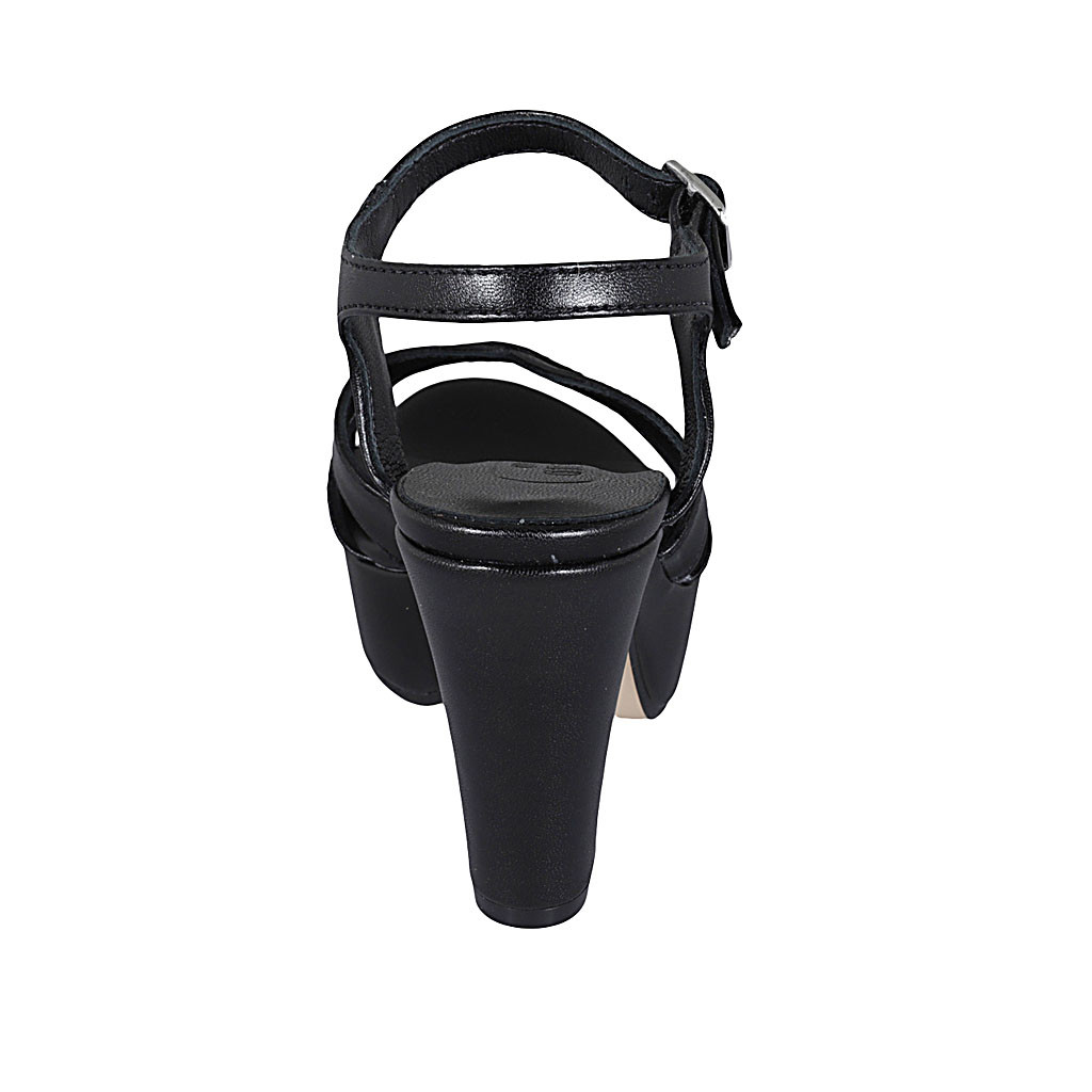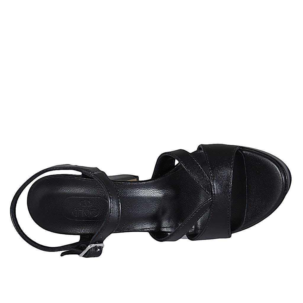 Sandalo da donna in pelle nera con plateau, cinturino e zeppa 12