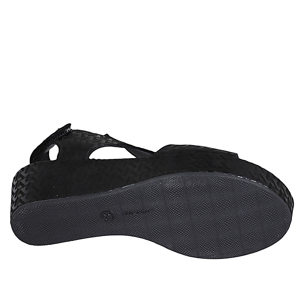 Sandalo da donna con velcro in tessuto stampato nero zeppa 7 - Misure disponibili: 42, 43