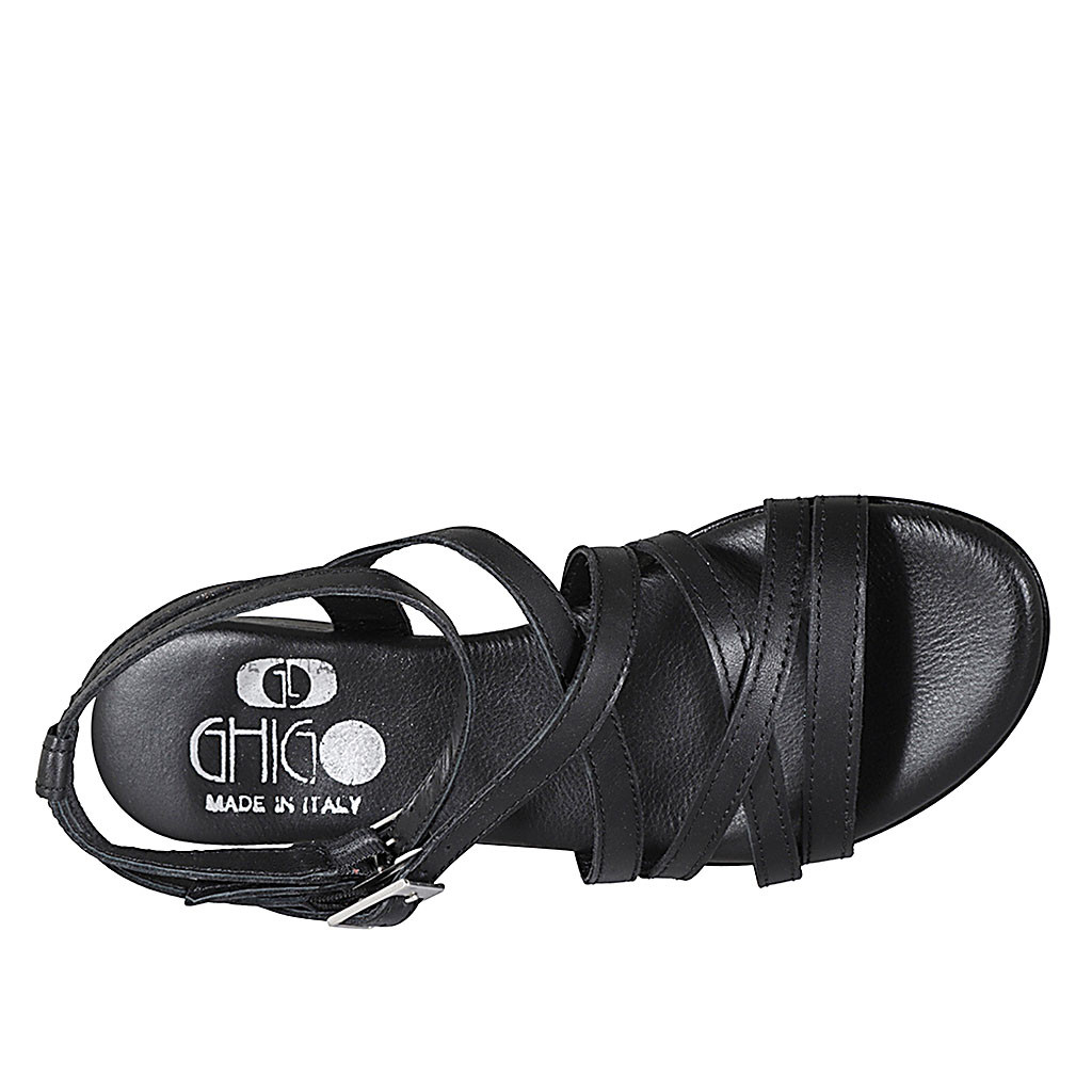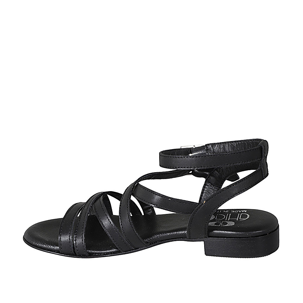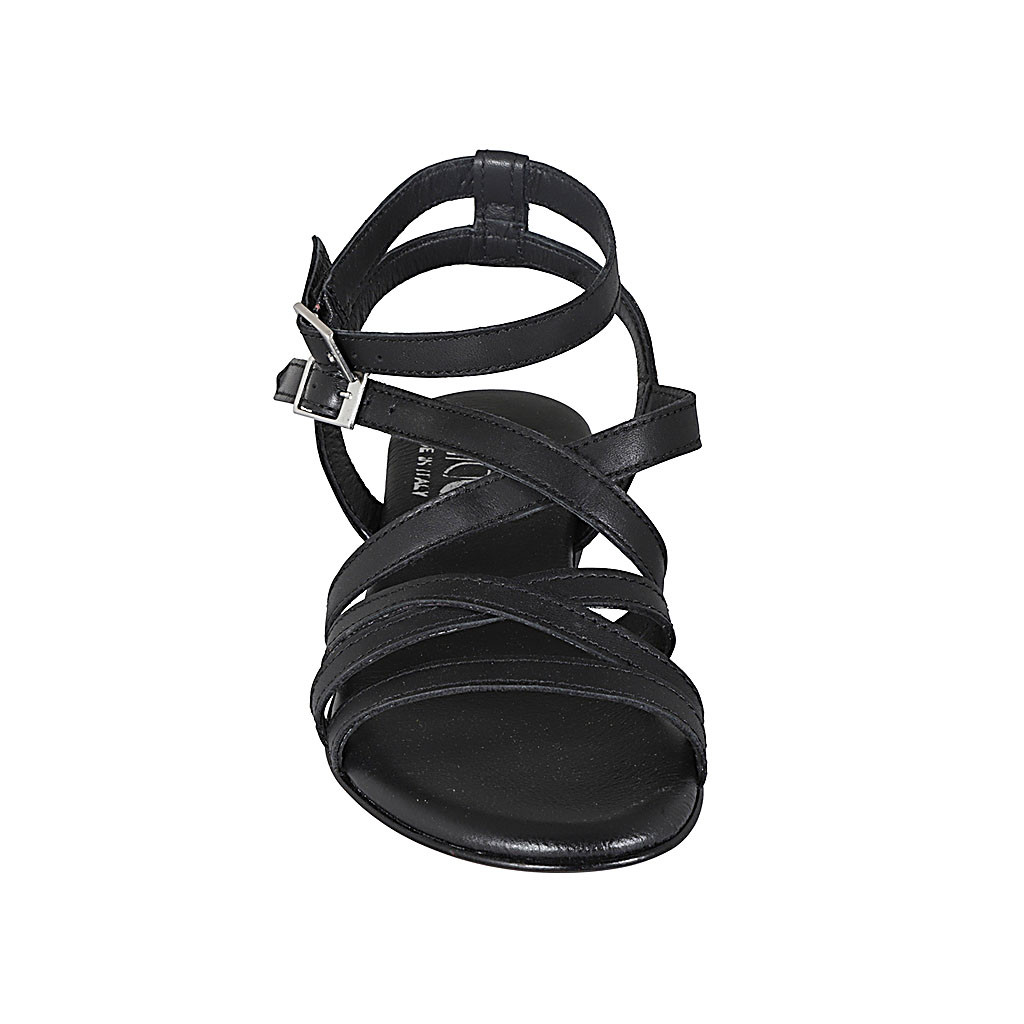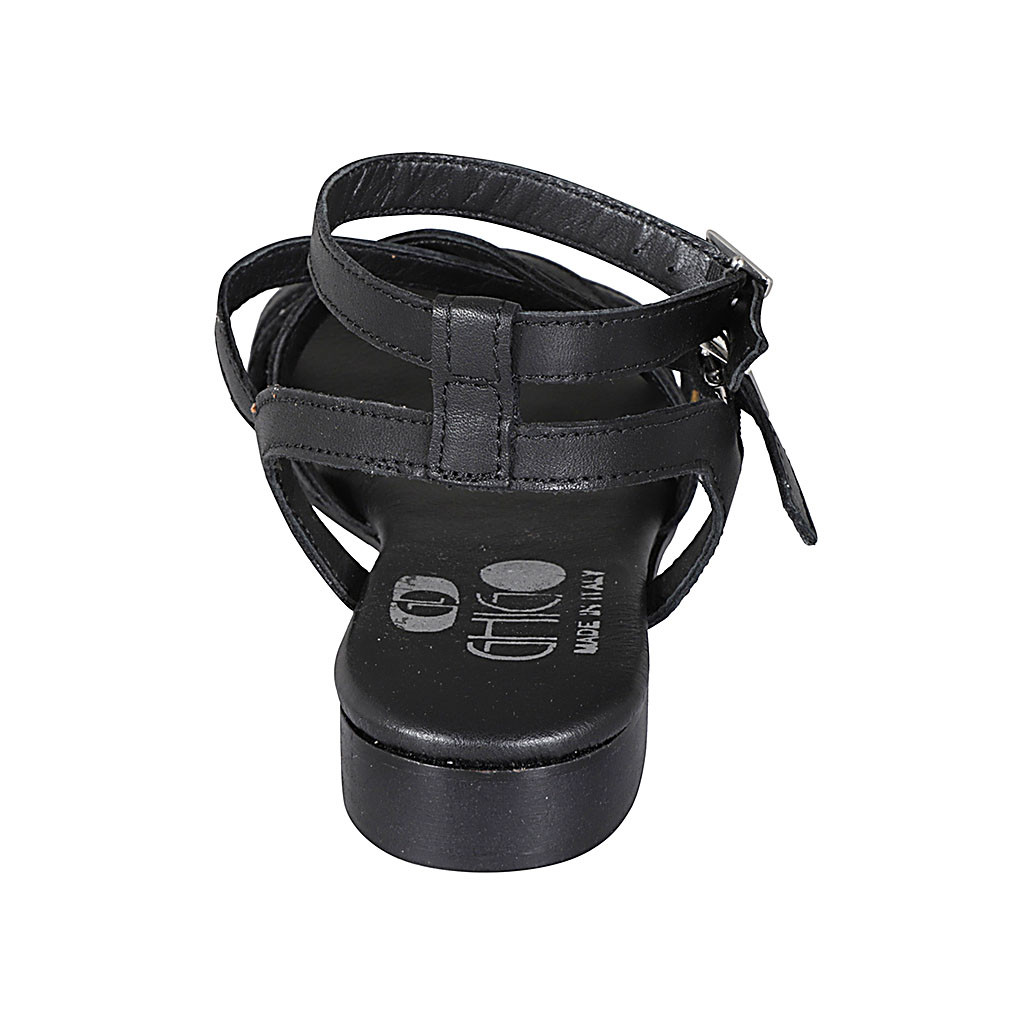 Sandalo da donna con due cinturini in pelle nera tacco 2 - Misure disponibili: 32