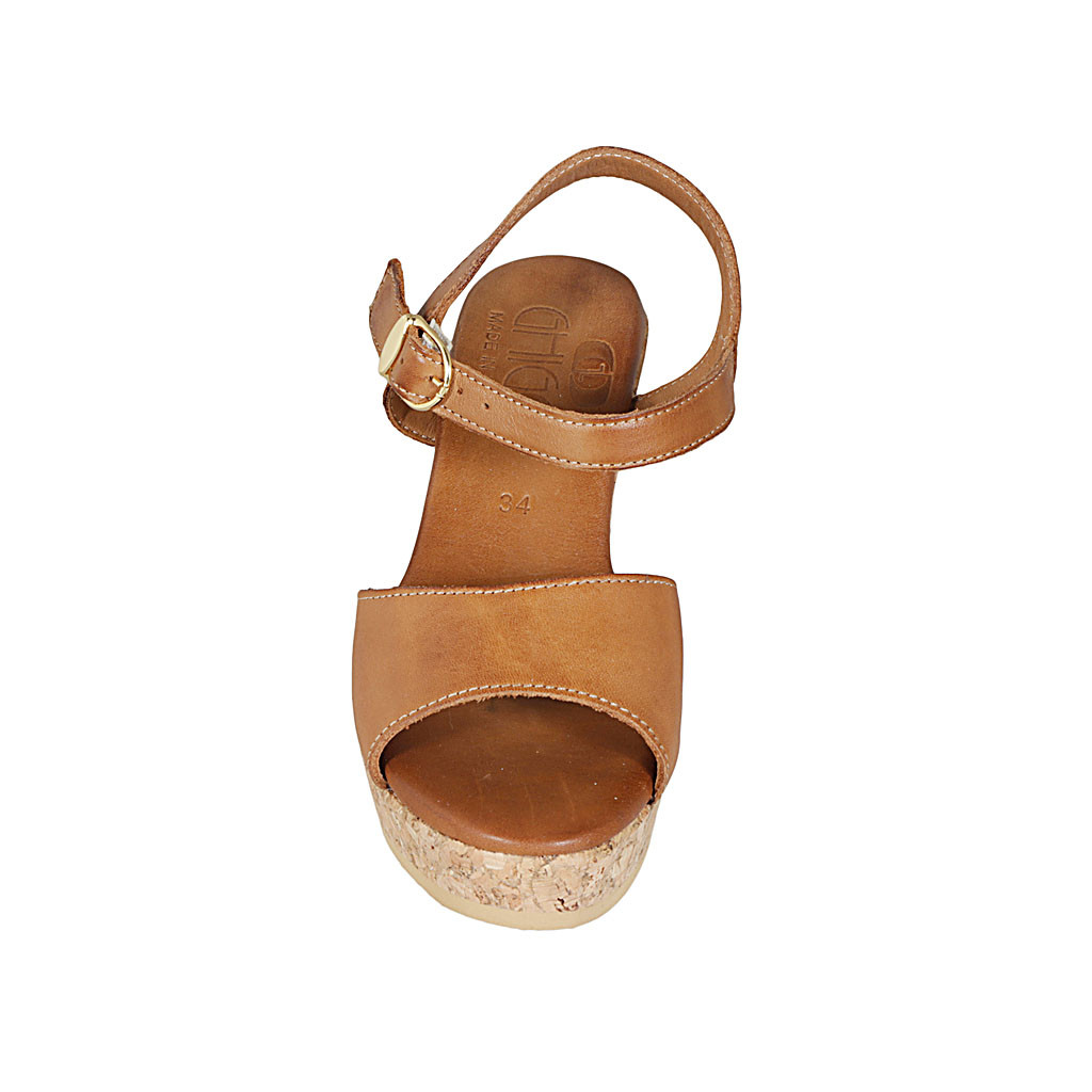 Sandalo da donna con cinturino e plateau in pelle color cuoio zeppa 9 - Misure disponibili: 43