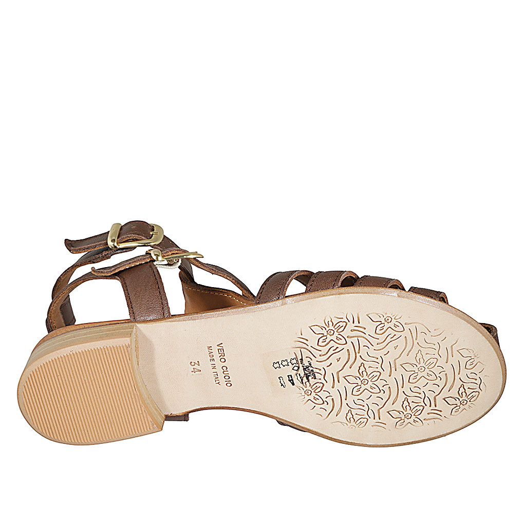 Sandalo da donna con cinturini alla caviglia in pelle marrone tacco 2 - Misure disponibili: 32, 33, 42
