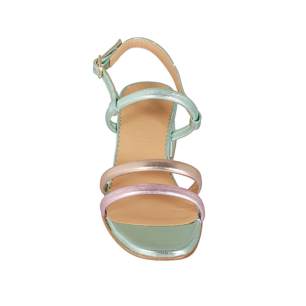 Sandalo da donna in pelle laminata verde, rosa e rame tacco 5