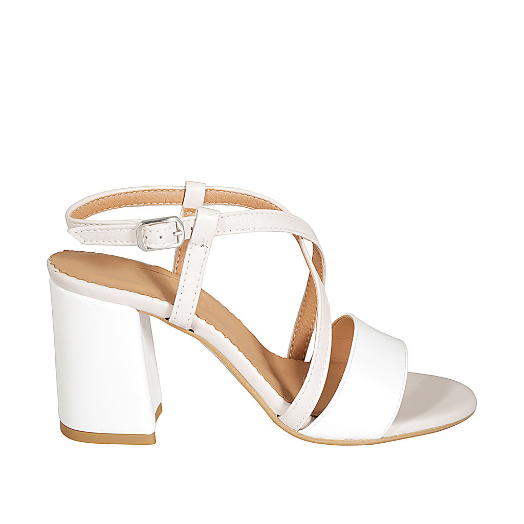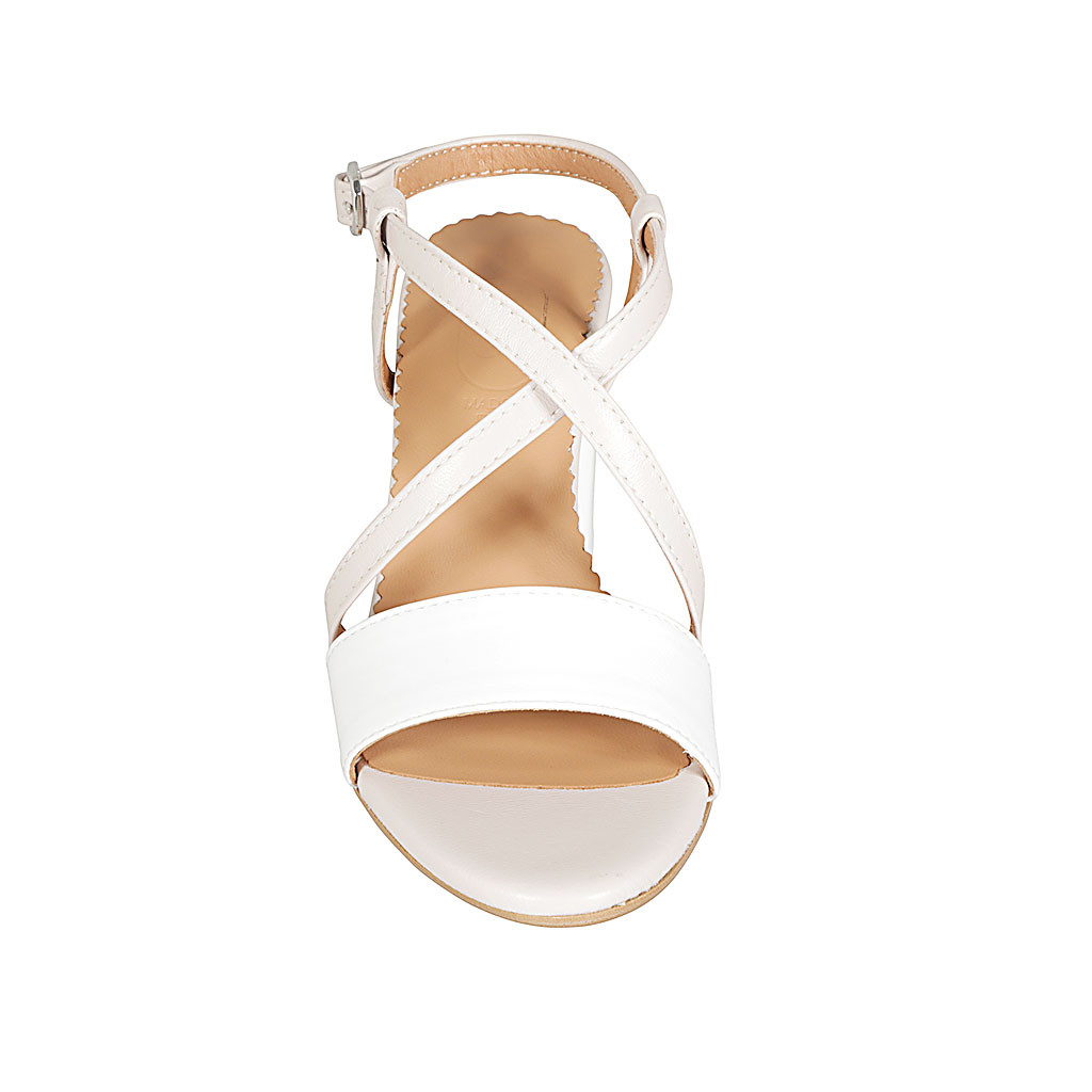 Sandalo da donna con catena e cinturino in pelle beige tacco 8