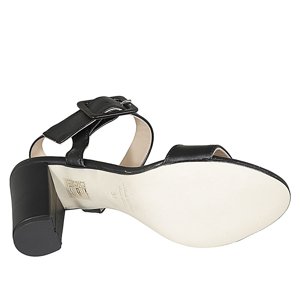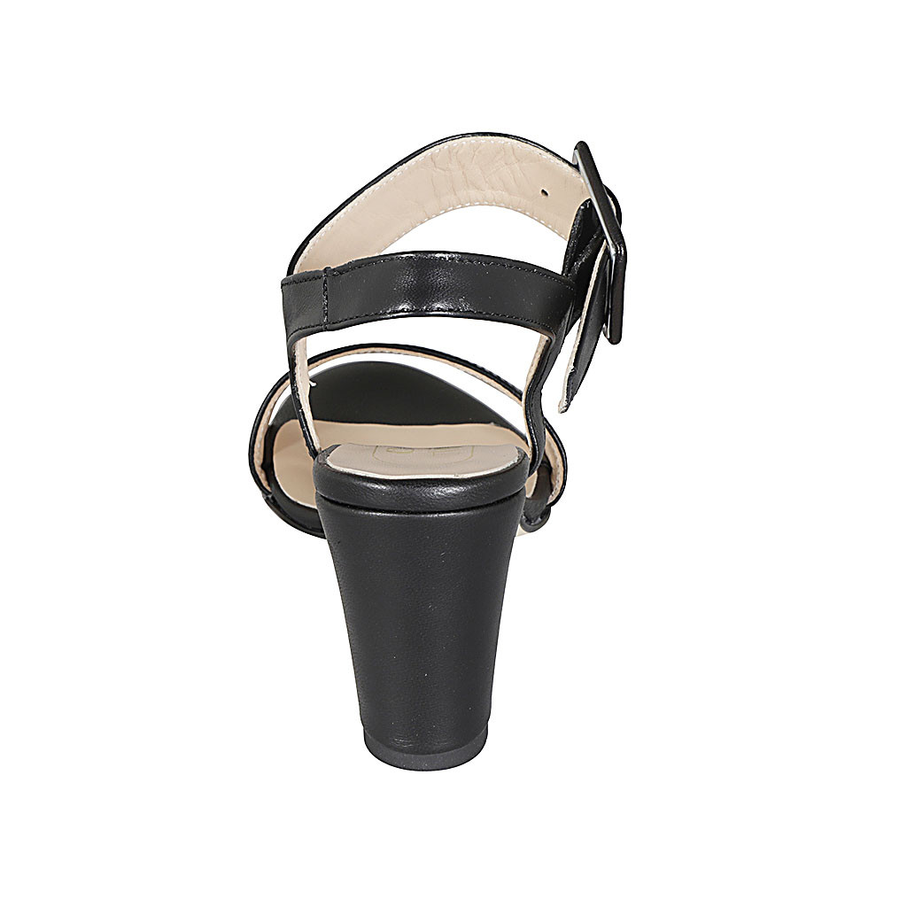 Sandalo da donna con fibbia in pelle nera tacco 8 - Misure disponibili: 32