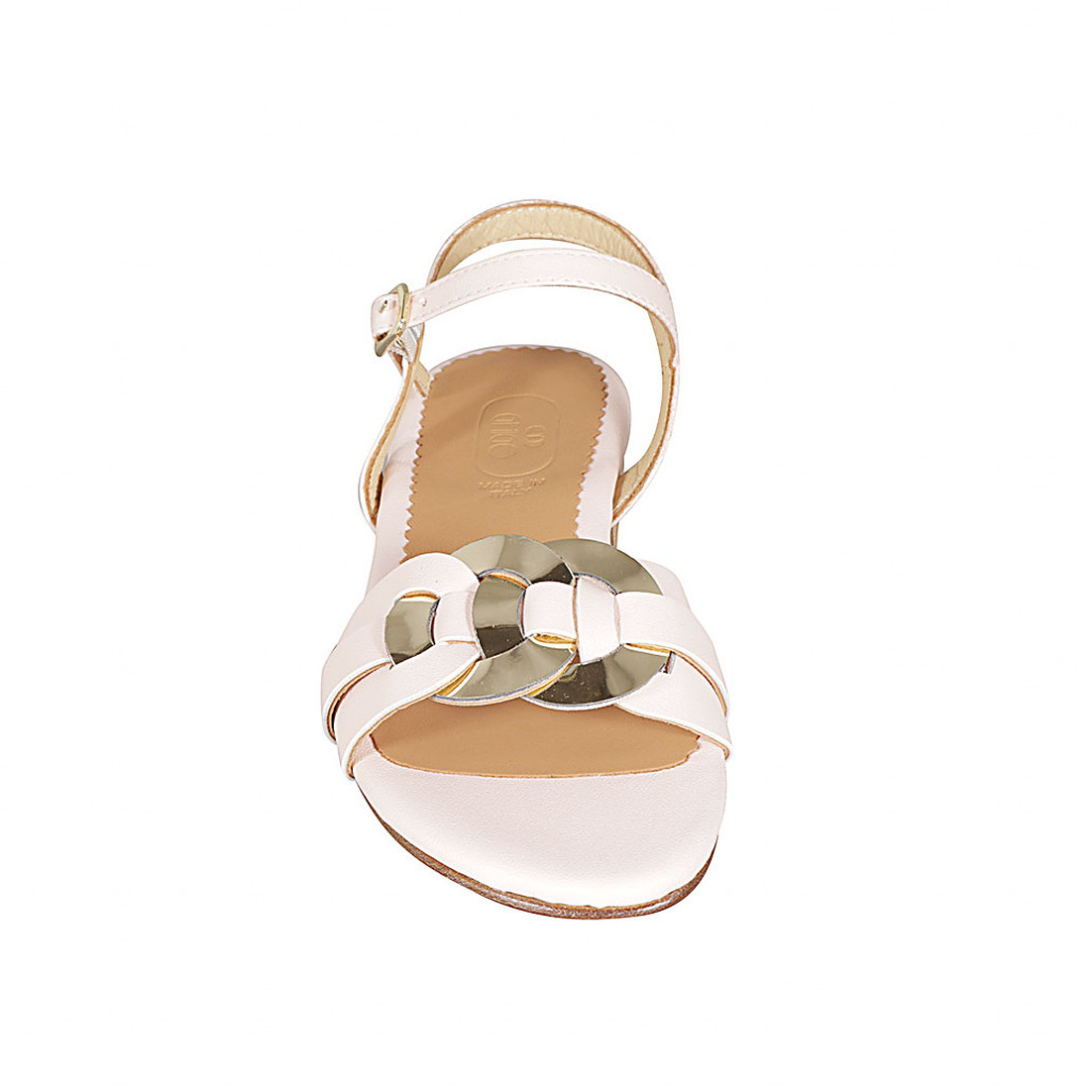 Sandalo da donna con accessorio in pelle oro e cinturino in pelle rosa tacco 2 - Misure disponibili: 33