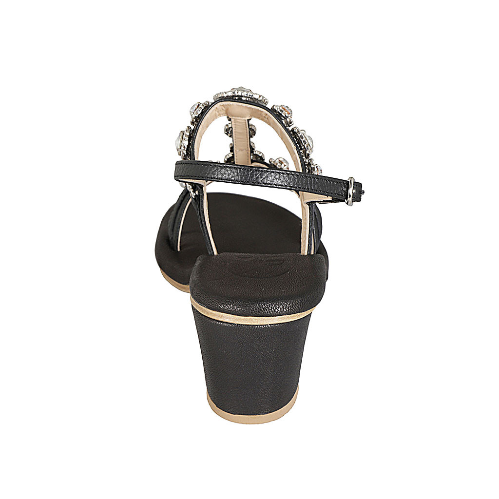 Sandalo da donna con strass di cristalli a fiori in pelle nera tacco 6 - Misure disponibili: 42, 43, 44, 46