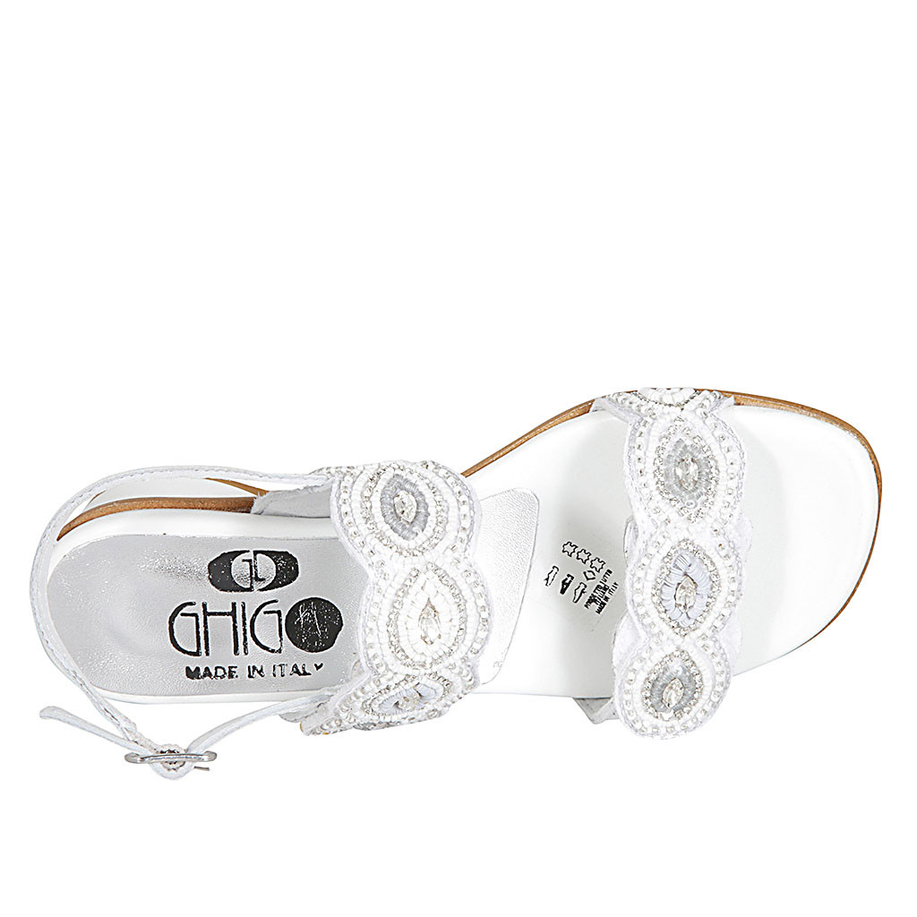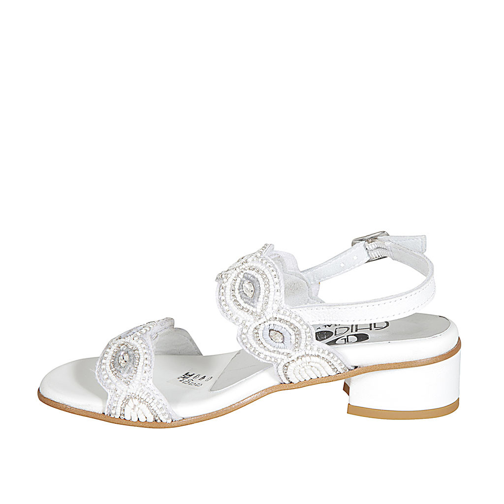 Sandalo da donna in pelle bianca con velcro e perline tacco 4 - Misure disponibili: 32