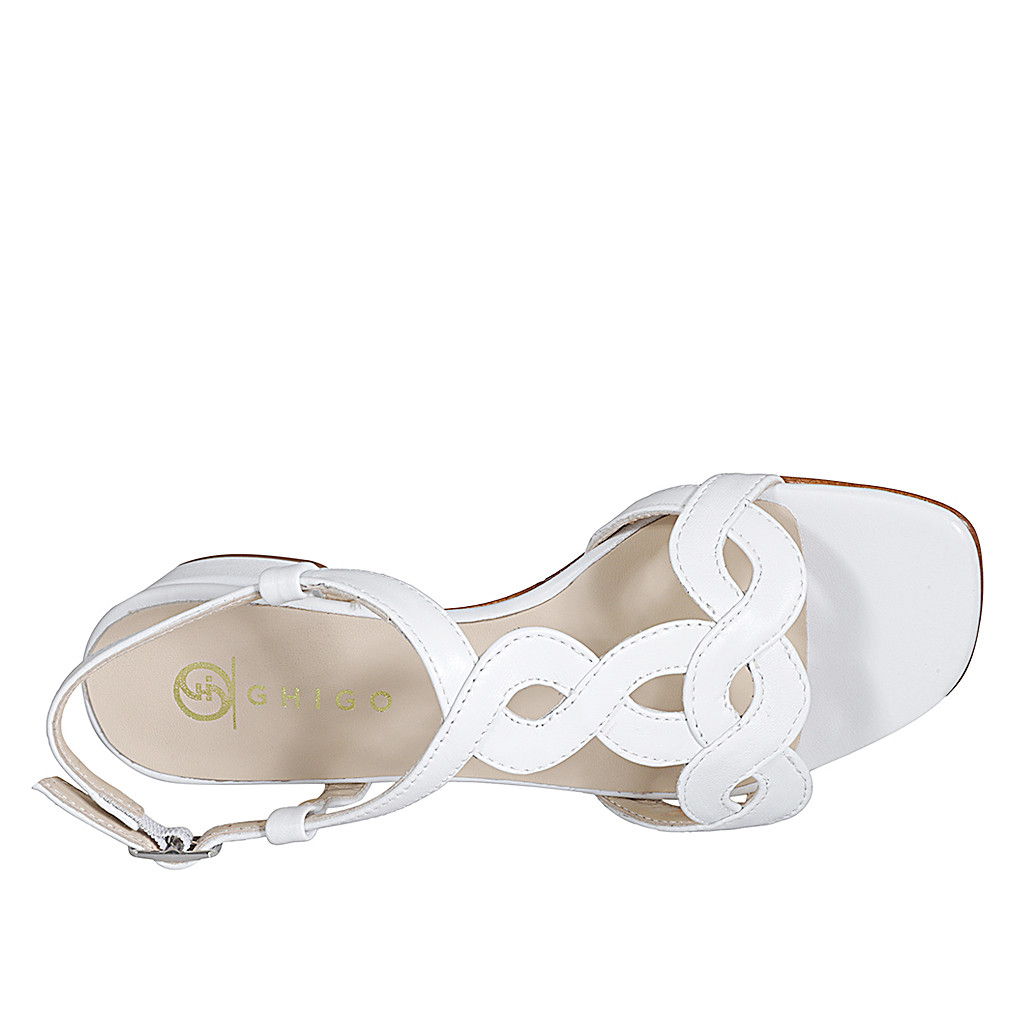 Sandalo da donna in pelle intrecciata bianca tacco 3