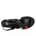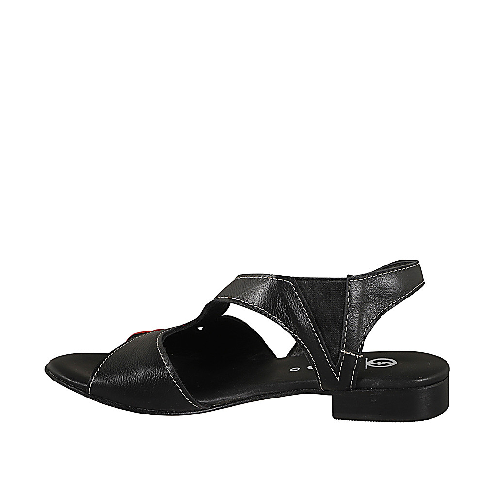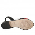 Sandalo da donna con elastico e fascia diagonale in pelle nera, bianca e rossa con tacco 2