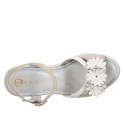 Sandalo da donna con plantare in memory foam e decorazione floreale, in camoscio beige e pelle bianca con zeppa 5