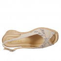 Sandalo da donna con plantare in memory foam, in camoscio beige e pelle stampata con zeppa in sughero 5