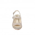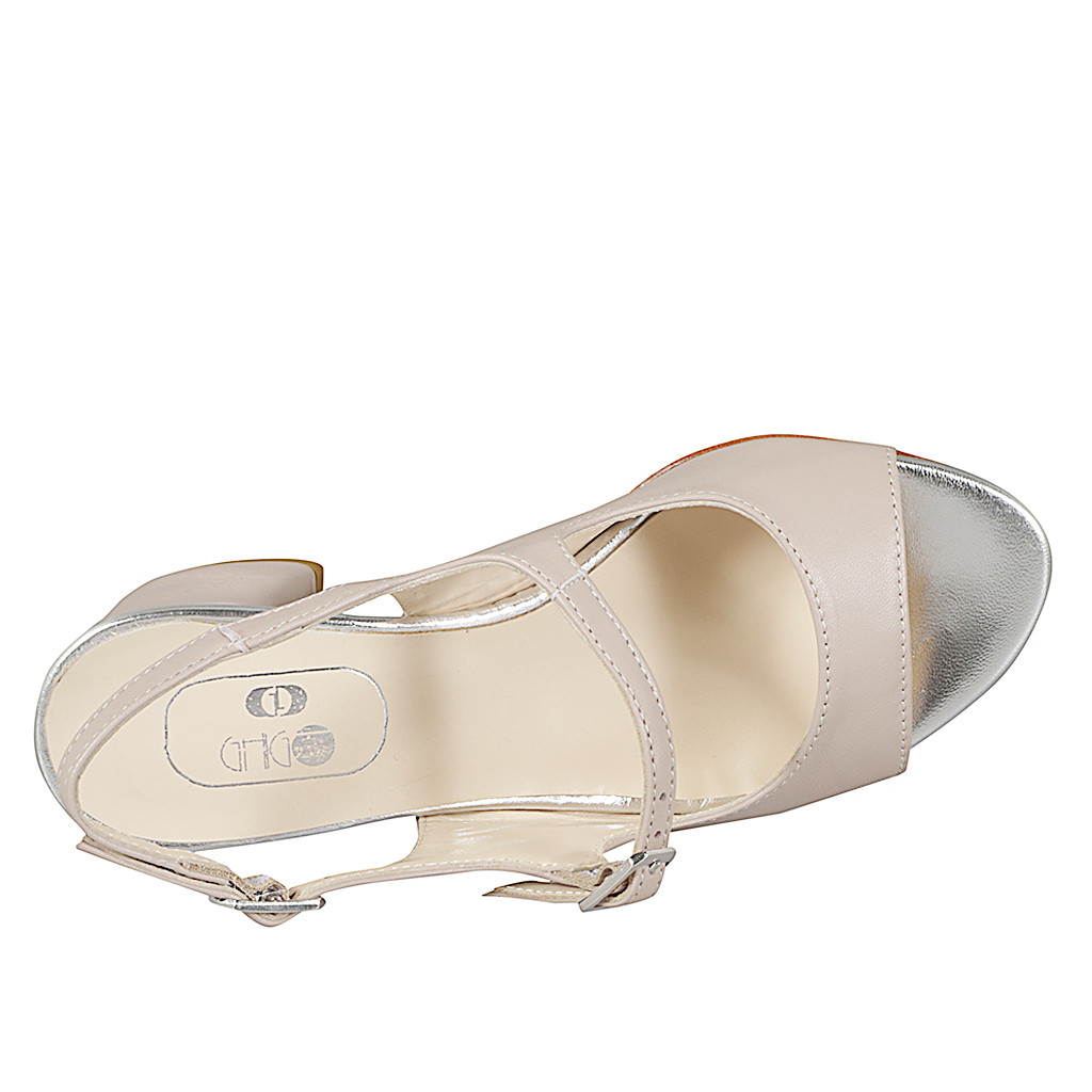 Sandalo da donna stile Mary Jane in pelle nude e laminata argento con tacco 5