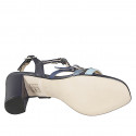 Sandalo da donna con 3 cinturini trasversali in pelle blu, celeste, avio e bluette con tacco 8