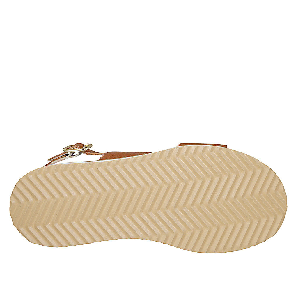 Sandalo da donna con elastico e chiusura a velcro in pelle bianca e argento e zeppa 3