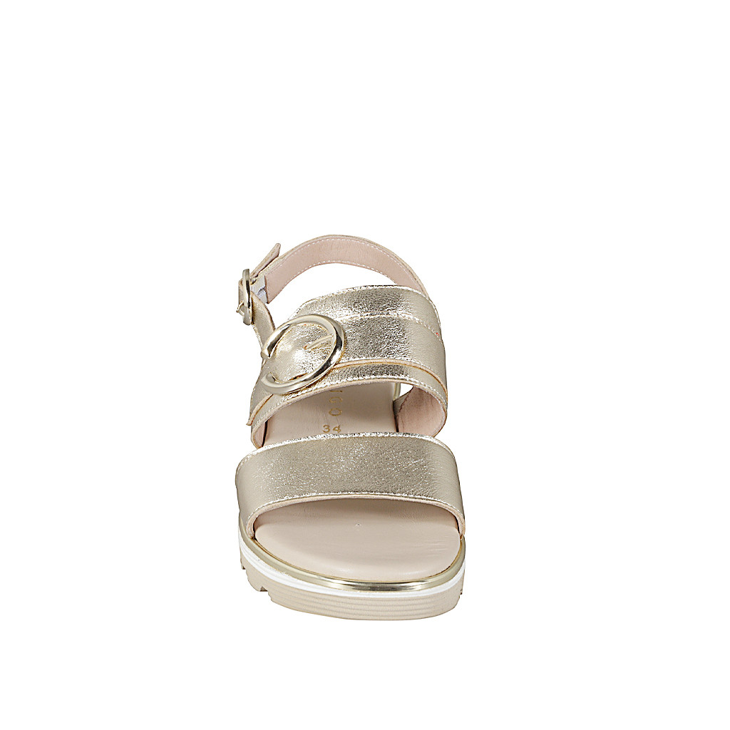 Sabot da donna a due fasce con elastico e borchie in pelle cuoio con zeppa 5
