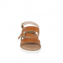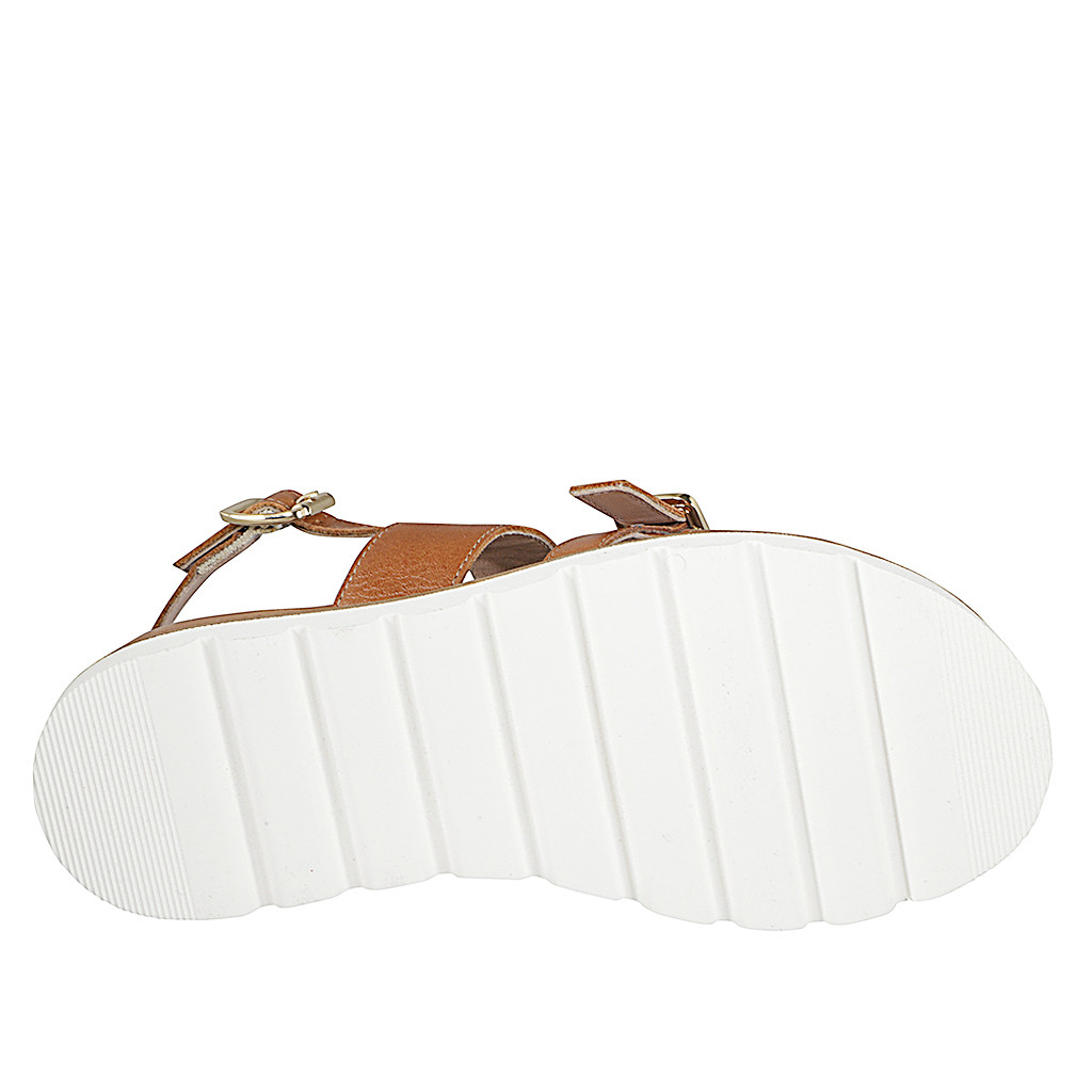 Sandalo da donna con zeppa rivestita in pelle cuoio con fibbia e zeppa 3