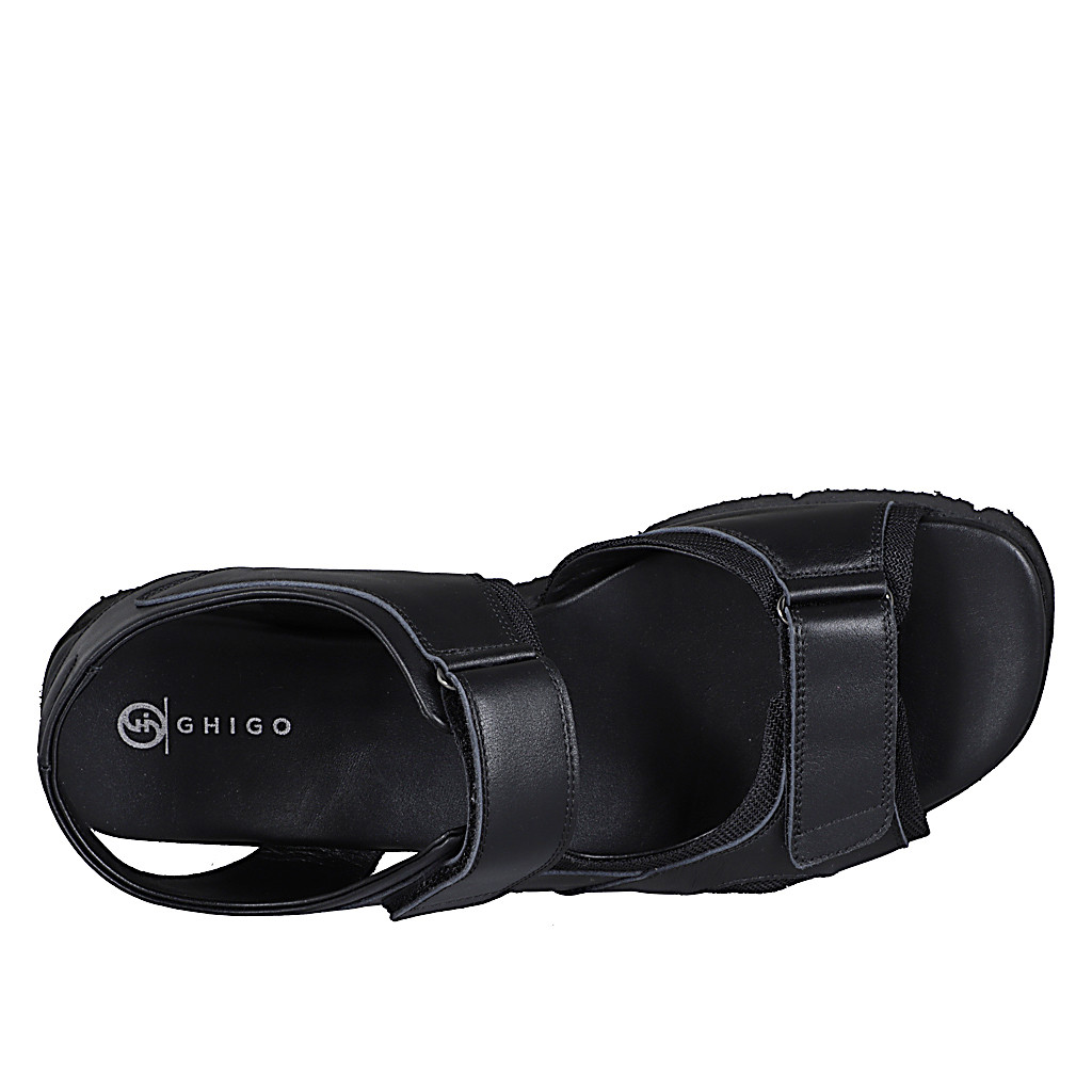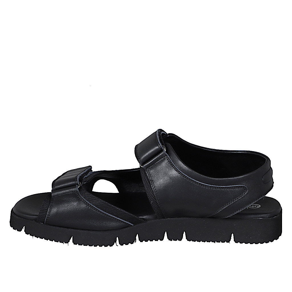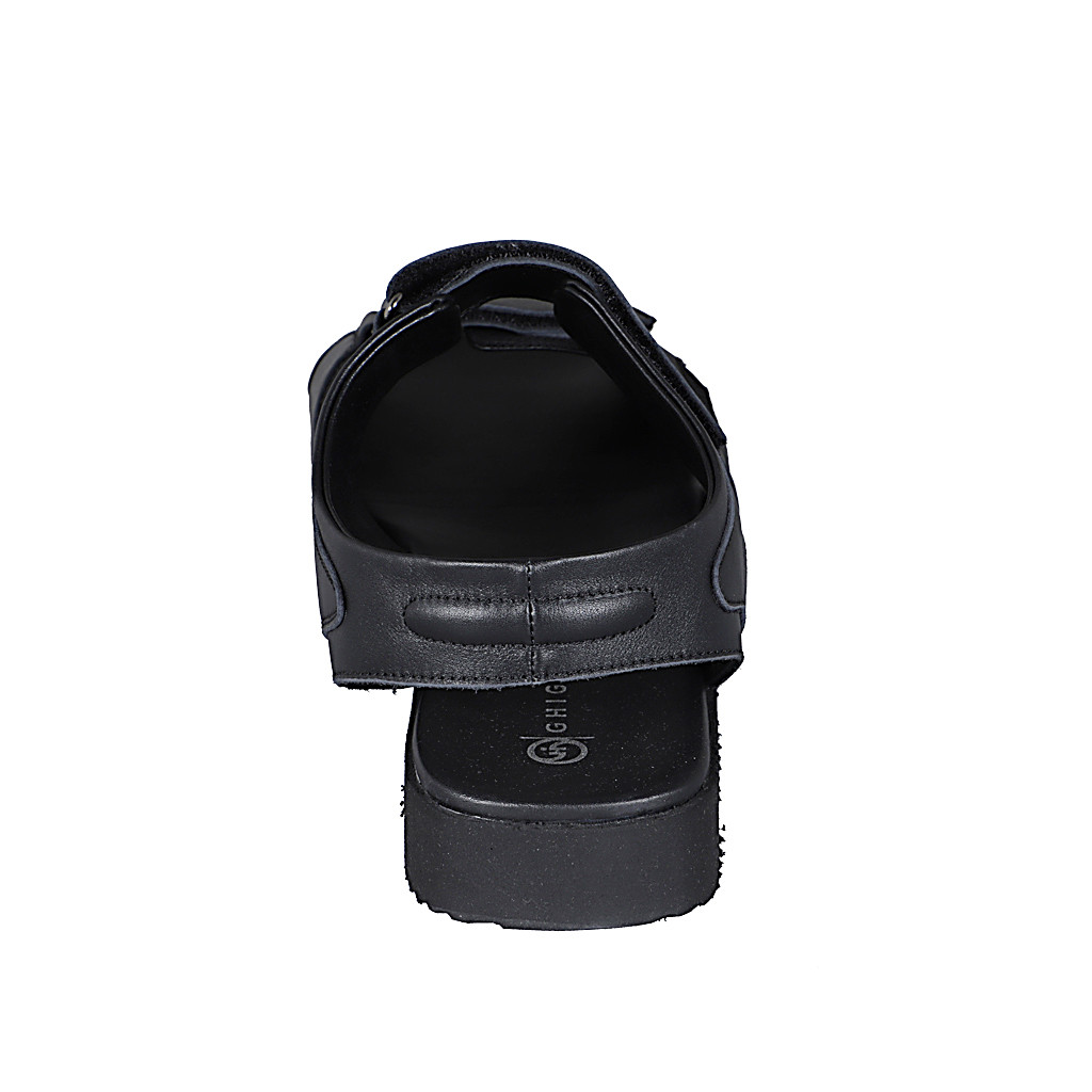 Sandalo infradito da donna in pelle nera con strass rame e argento e cinturino tacco 2