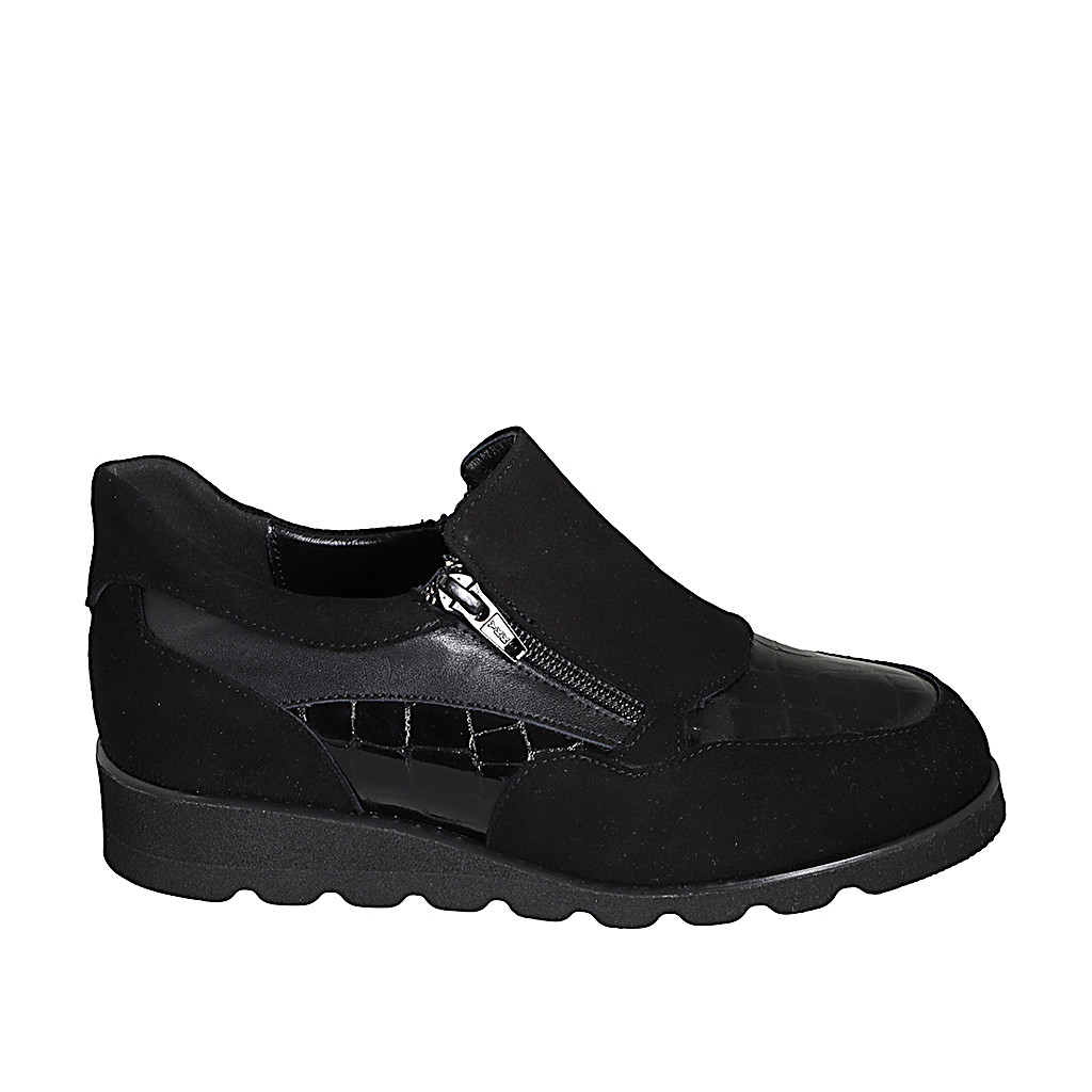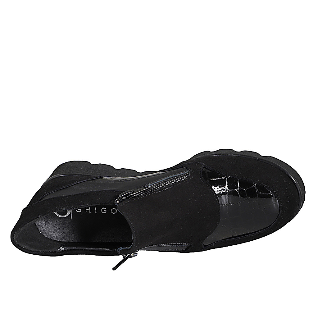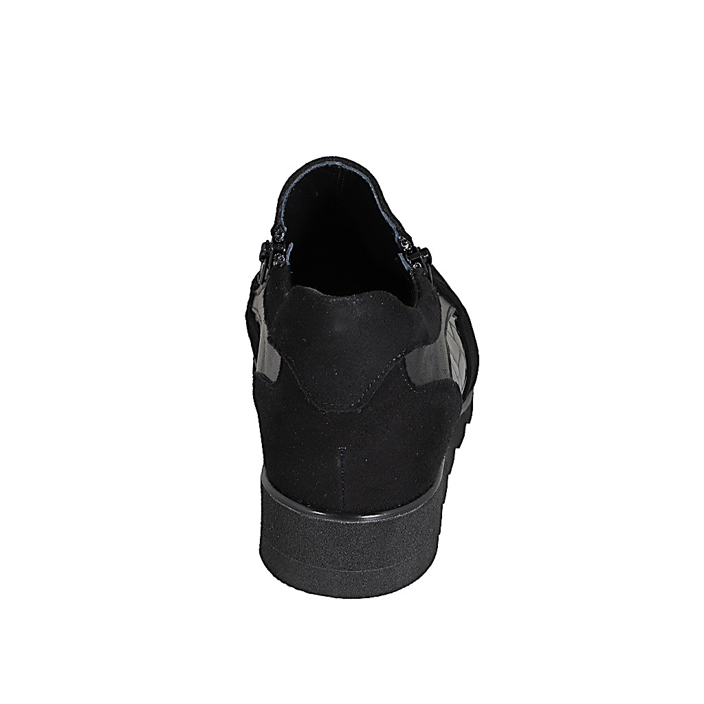 Scarpa stringata con cerniere da donna in pelle, camoscio e vernice marrone zeppa 4
