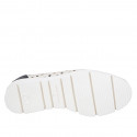 Scarpa accollata con zeppa e plantare estraibile da donna in pelle traforata avorio e profili in vernice blu zeppa 3