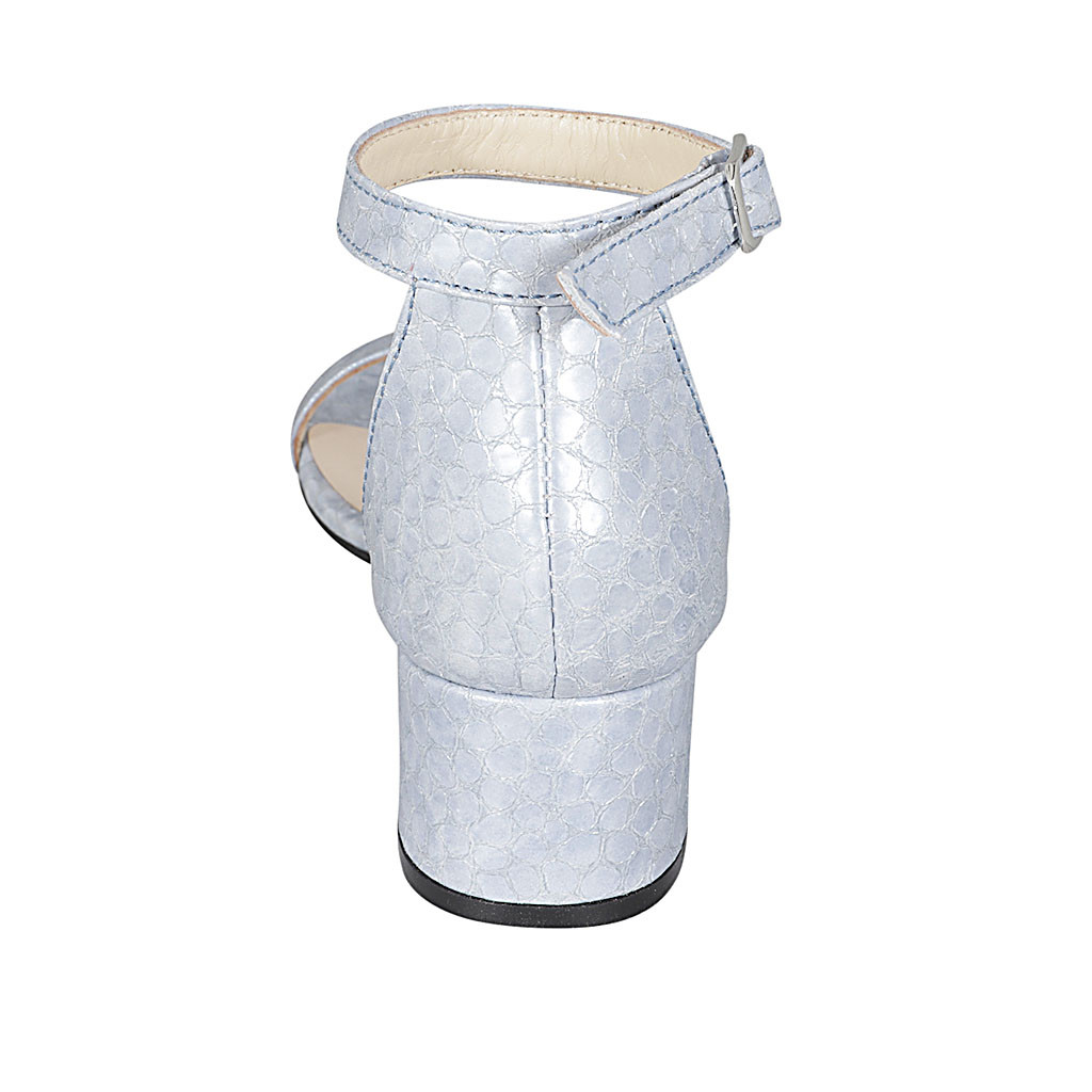 Scarpa aperta da donna con cinturino in vernice stampata azzurra tacco 5