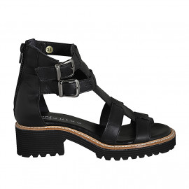 Scarpa aperta da donna con cinturino incrociato in pelle laminata platino tacco 8 - Misure disponibili: 43, 44, 46