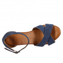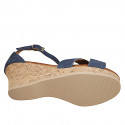 Scarpa aperta con zeppa e plateau in sughero in camoscio taupe e tessuto corda con stampa...