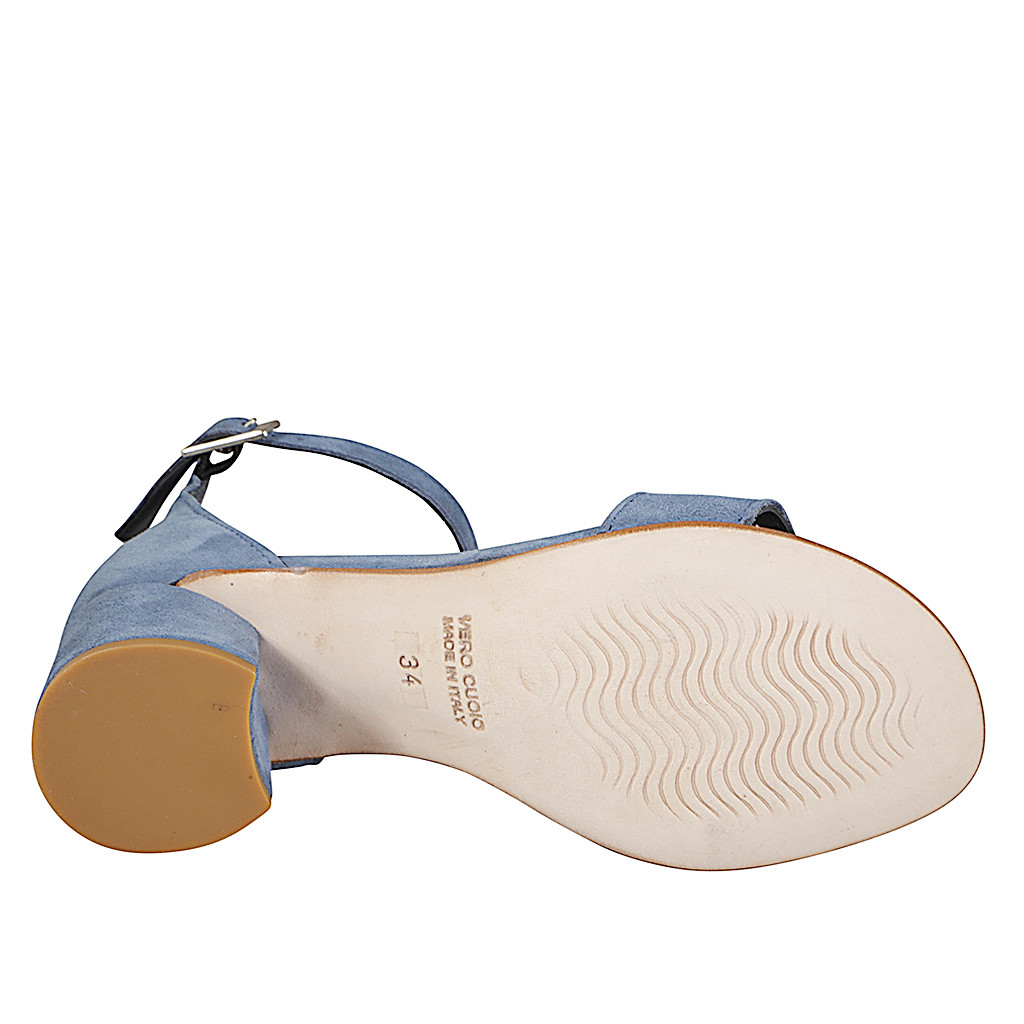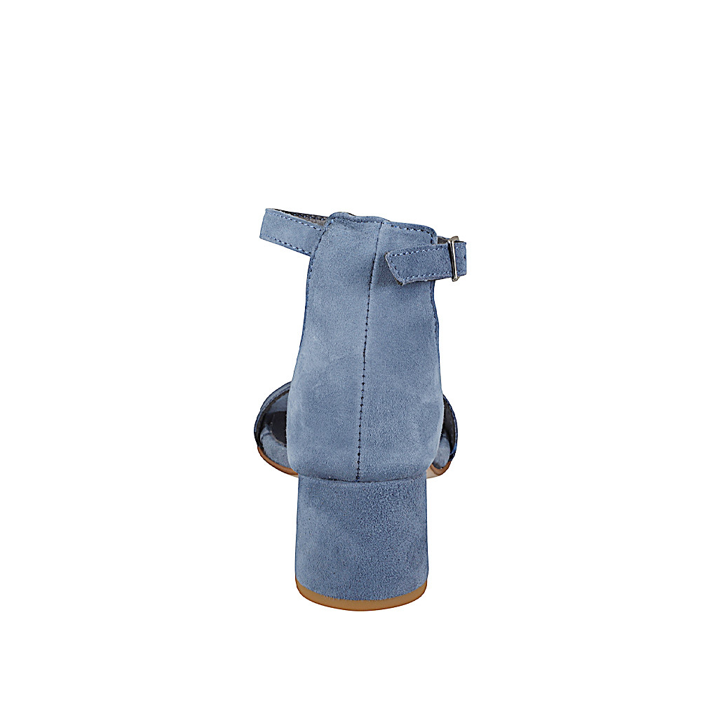 Scarpa aperta con cinturino alla caviglia e fascia singola frontale in camoscio avio tacco 5
