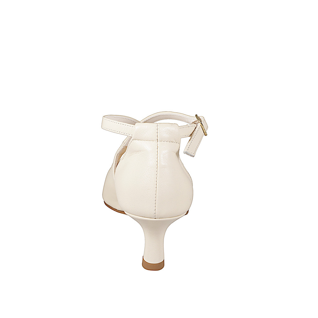Décolleté da donna a punta sfilata con cinturini incrociati in pelle avorio e tacco 5