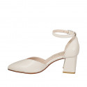Sabot a punta da donna con doppio cinturino in pelle cuoio e beige con tacco 7
