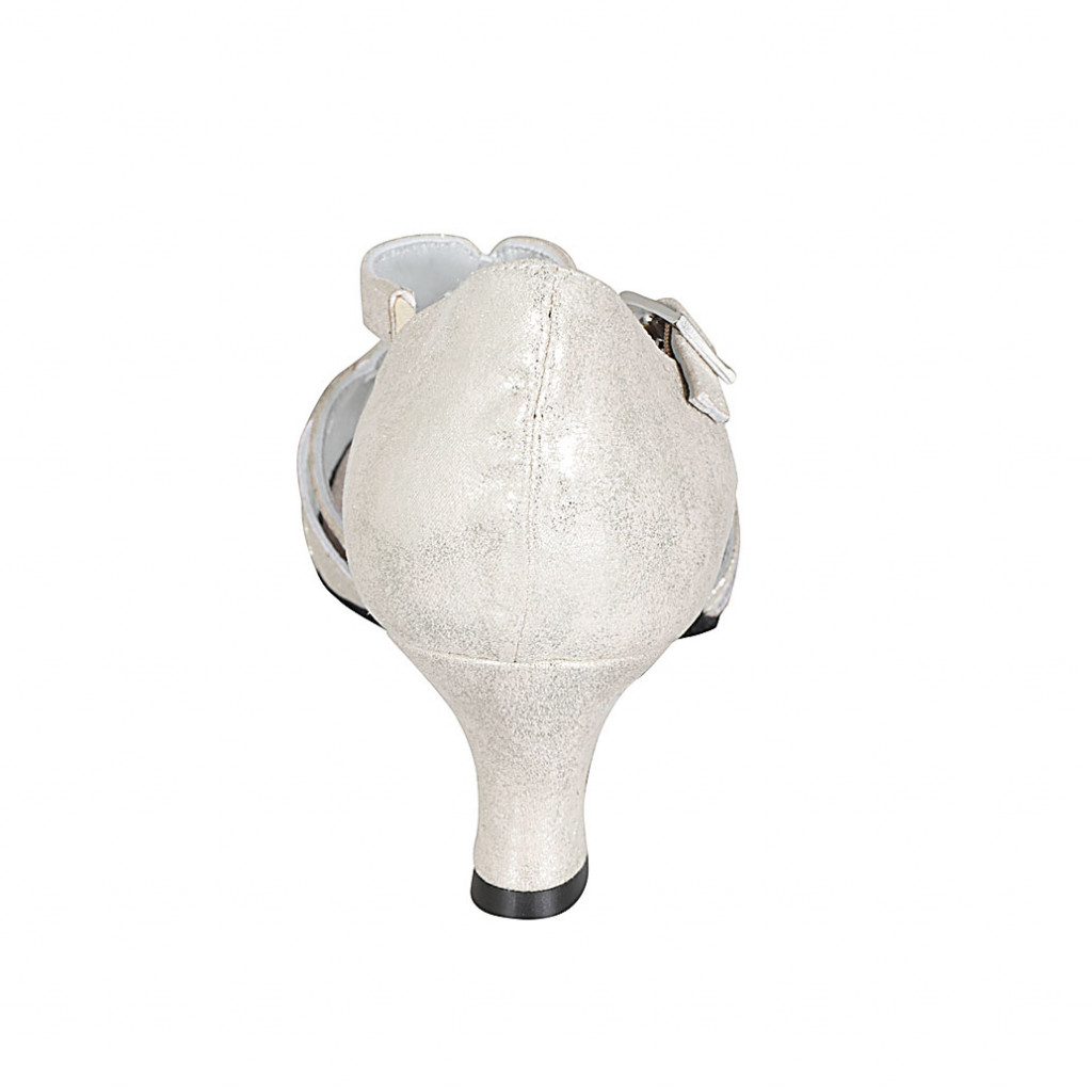 Scarpa da ballo con cinturino in camoscio laminato platino tacco 5