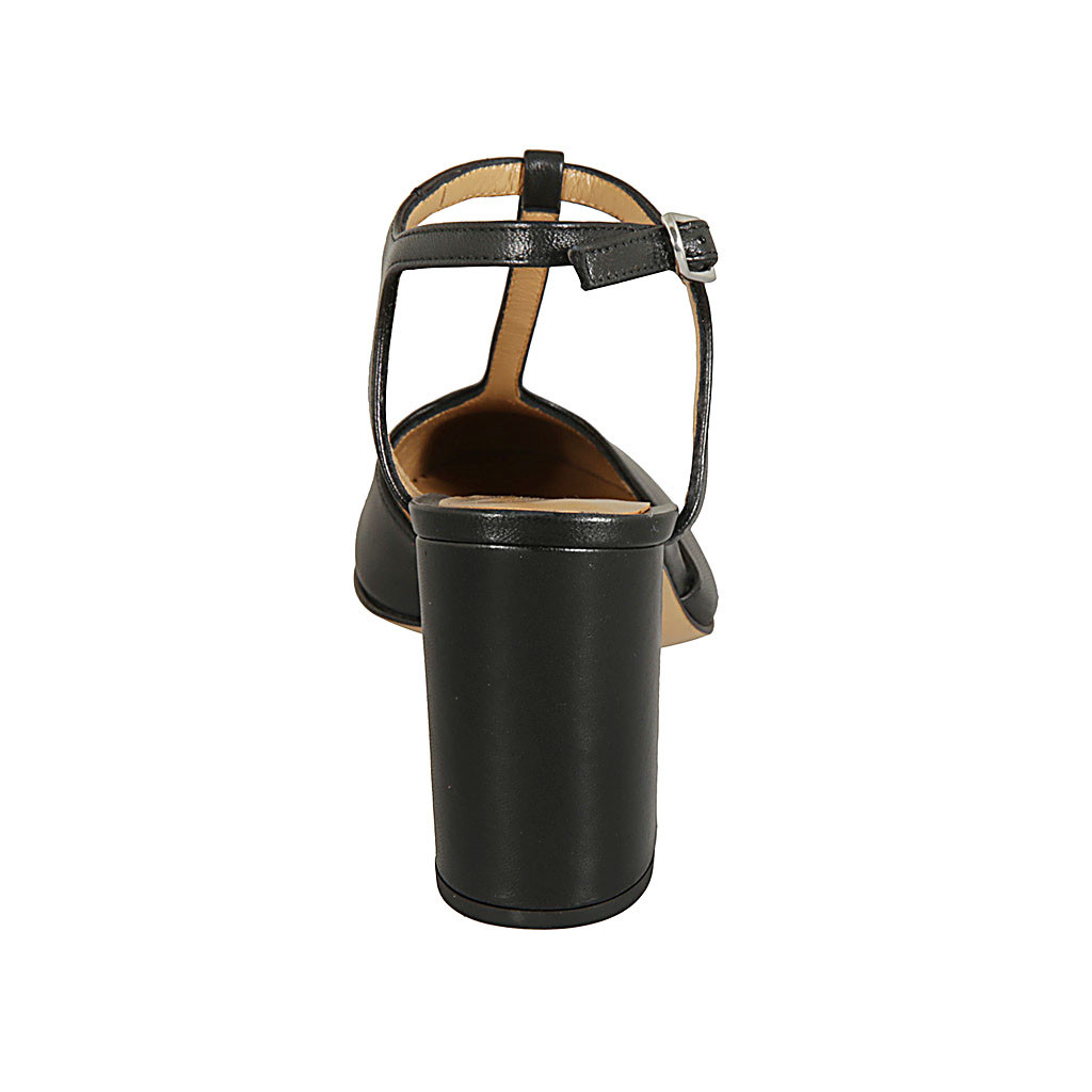 Décolleté aperta dietro da donna con cinturino Charleston in pelle nera tacco 8