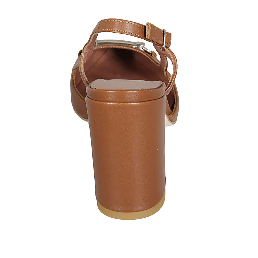 Décolleté aperta dietro in pelle color cuoio con accessorio tacco 8