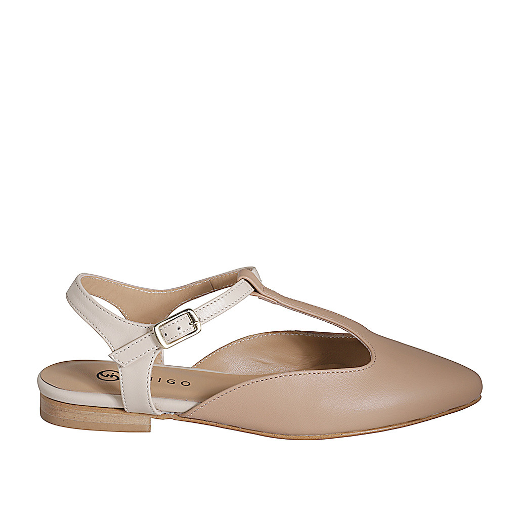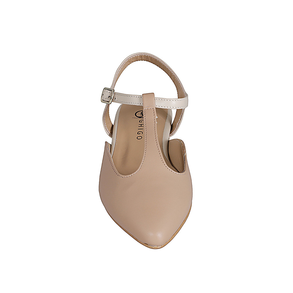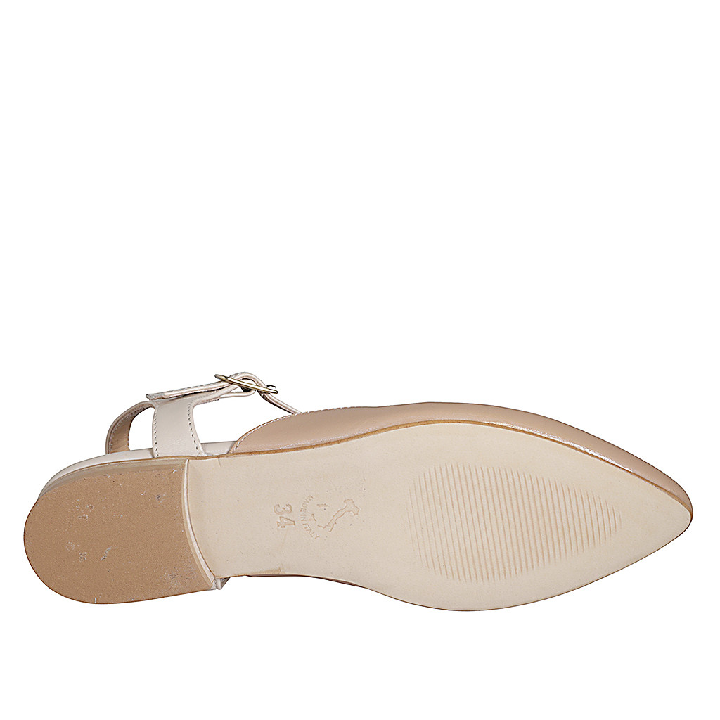 Décolleté aperta sul tallone in pelle rosa e crema con cinturino Charleston tacco 2