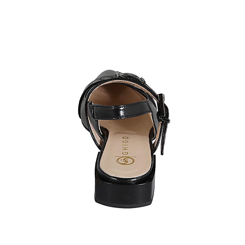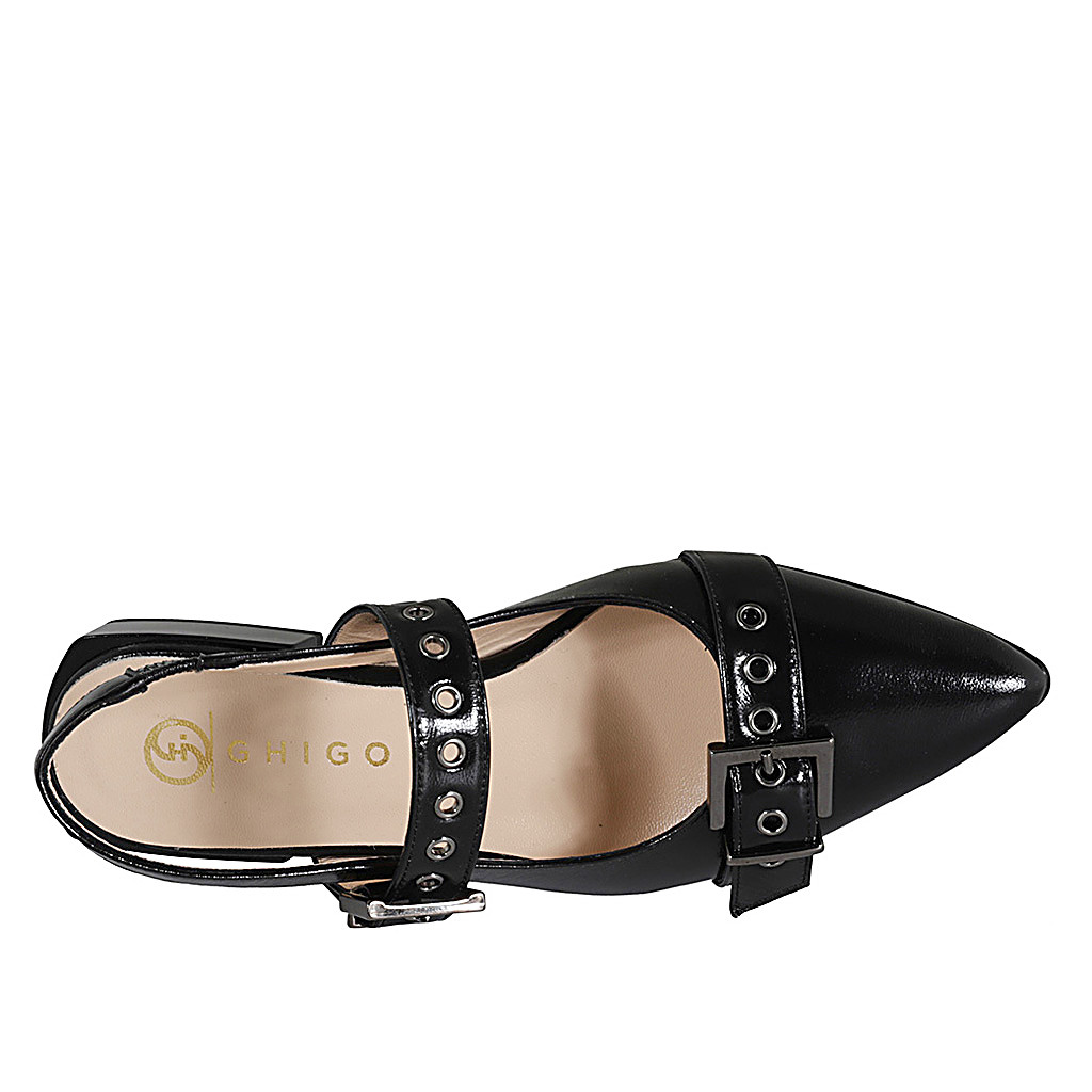 Décolleté aperta sul tallone a punta da donna con elastico e fibbie in vernice nera tacco 3 - Misure disponibili: 35