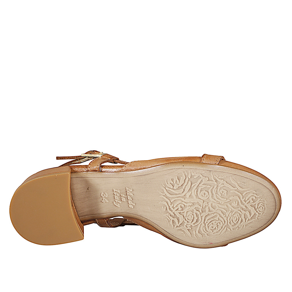 Slingback da donna con accessorio metallico e punta tonda in pelle cuoio con tacco 4
