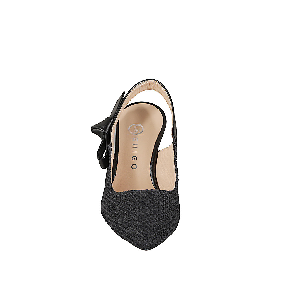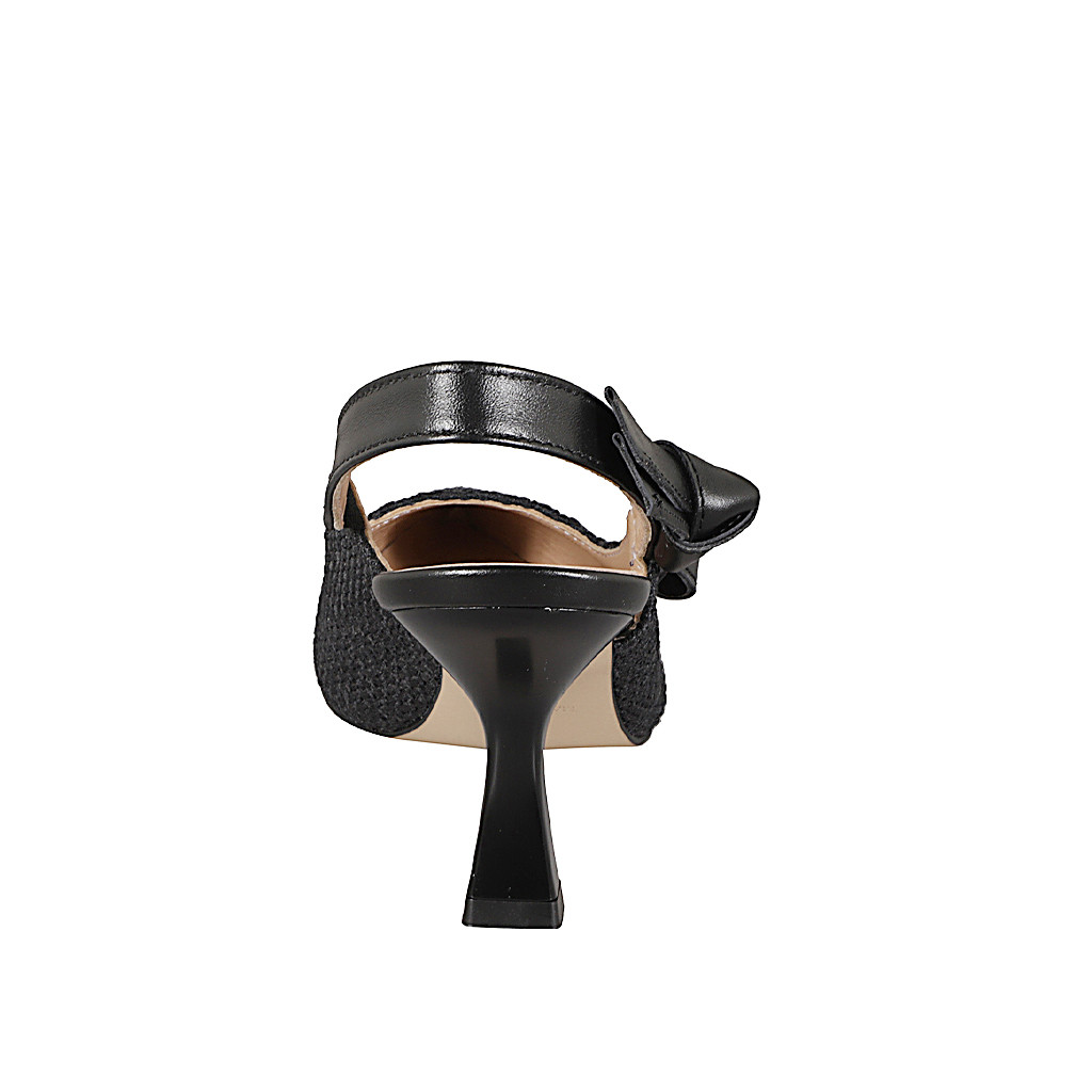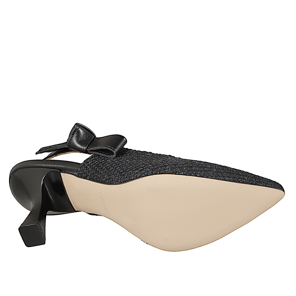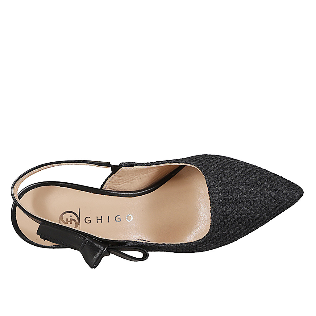 Slingback a punta da donna con cinturino dotato di elastico in tessuto intrecciato nero e pelle nera, tacco 7