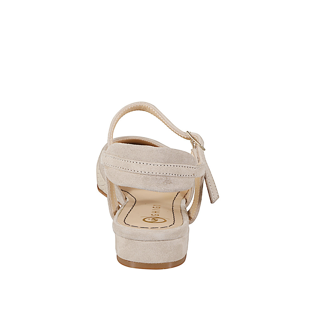 Slingback a punta da donna in pelle intrecciata avorio e profili in camoscio taupe tacco 2