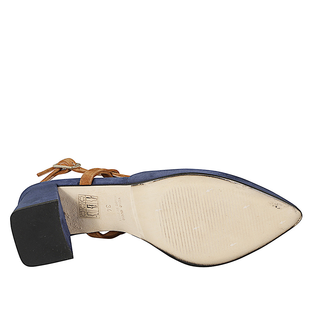 Slingback a punta da donna con borchie in camoscio blu e cuoio con tacco 6