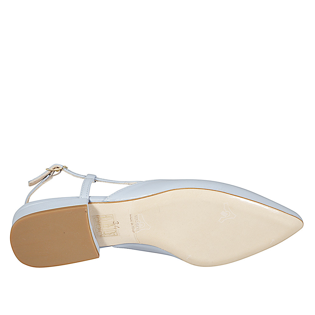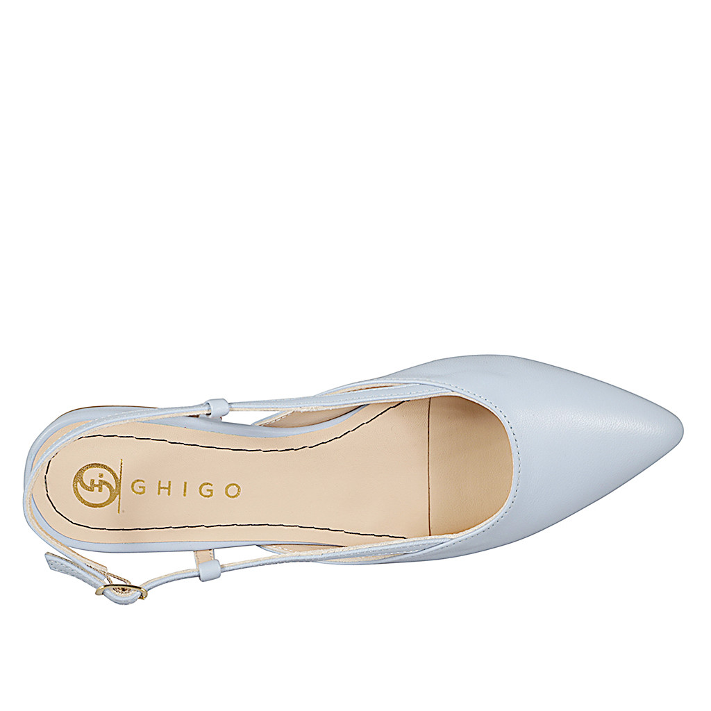 Slingback a punta da donna senza ornamenti in pelle celeste con tacco 2