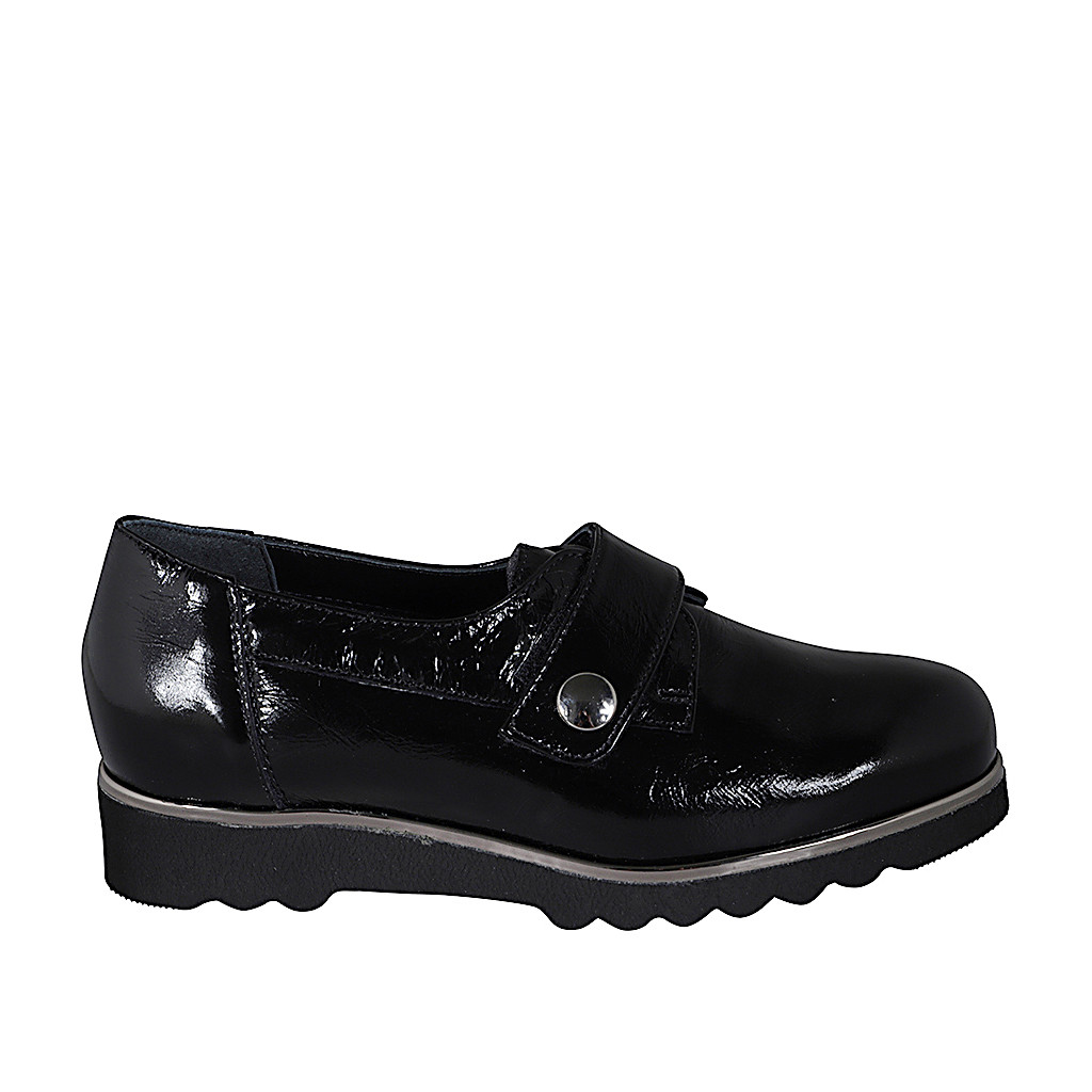 Scarpa accollata da donna con velcro e plantare estraibile in vernice nera zeppa 3 - Misure disponibili: 32, 34, 35, 43, 44, 46