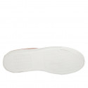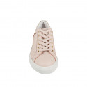 Sneaker stringata da donna con plantare estraibile in pelle rosa e pelle laminata platino zeppa 3