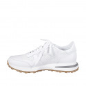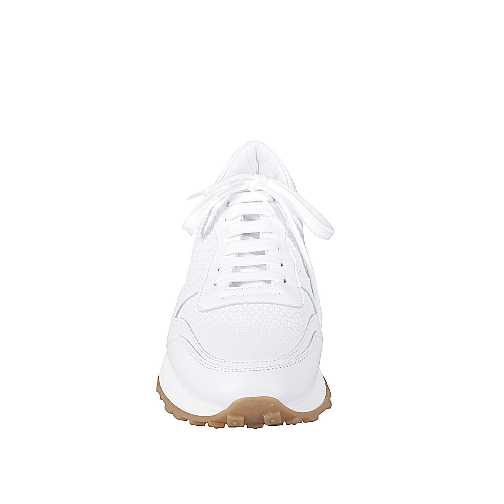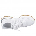 Sneaker da donna con plantare estraibile in pelle e pelle forata bianca zeppa 4