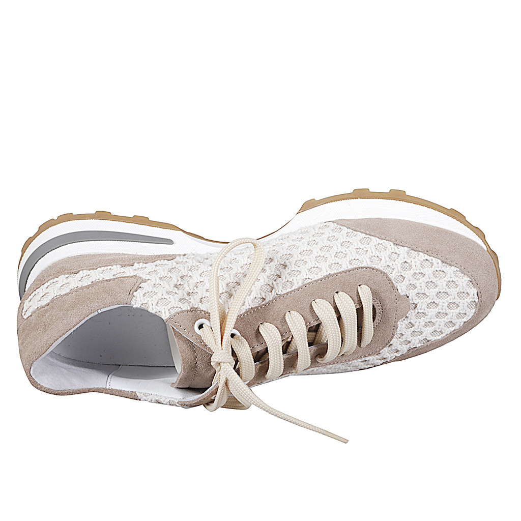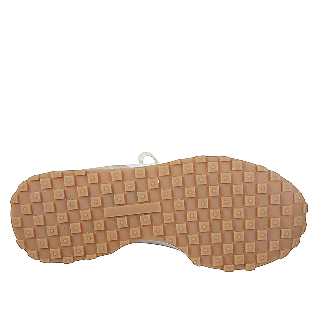 Scarpa accollata con zeppa e plantare estraibile da donna in pelle traforata avorio e profili in...