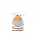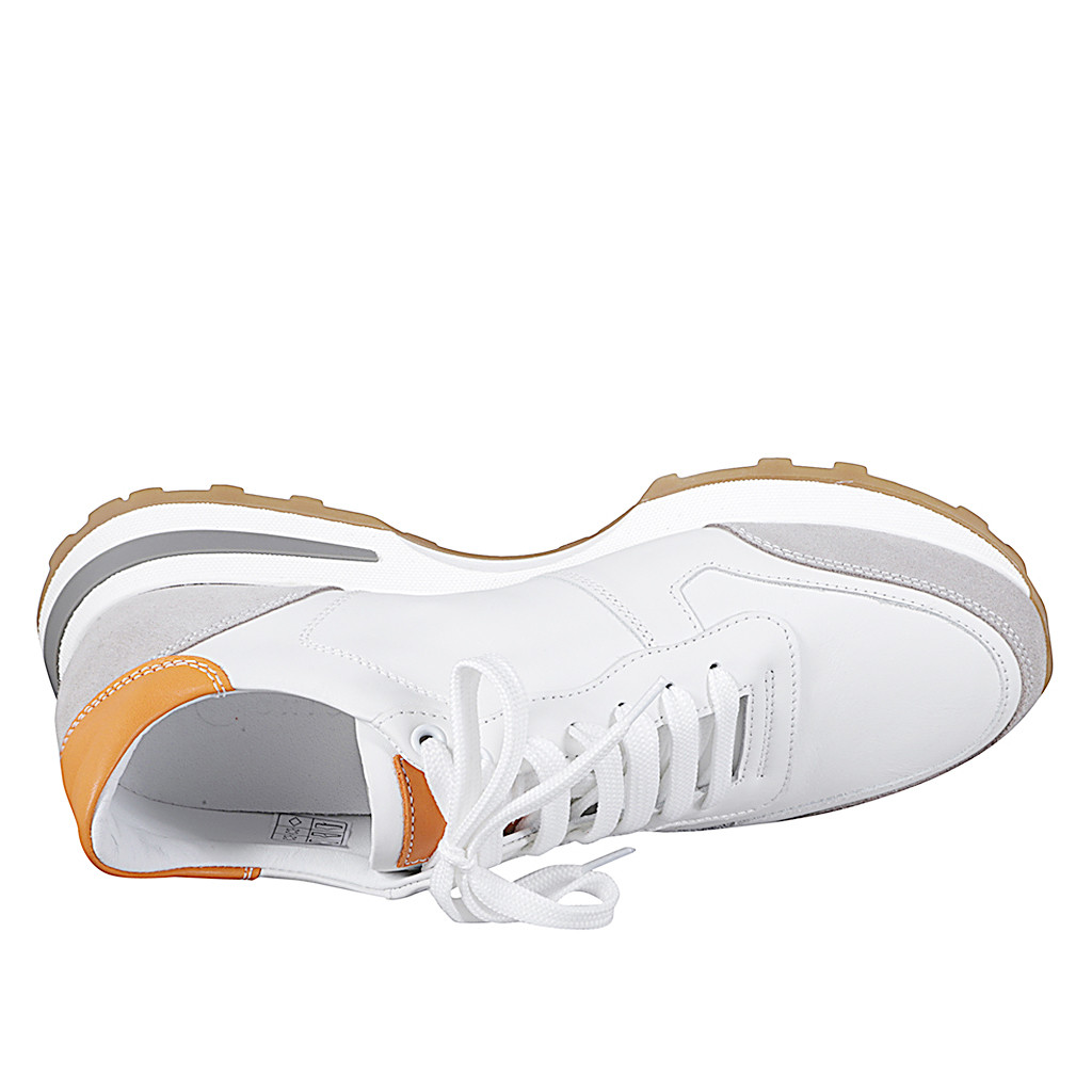 Sneaker da donna con plantare estraibile in pelle bianca e arancione e camoscio grigio zeppa 4
