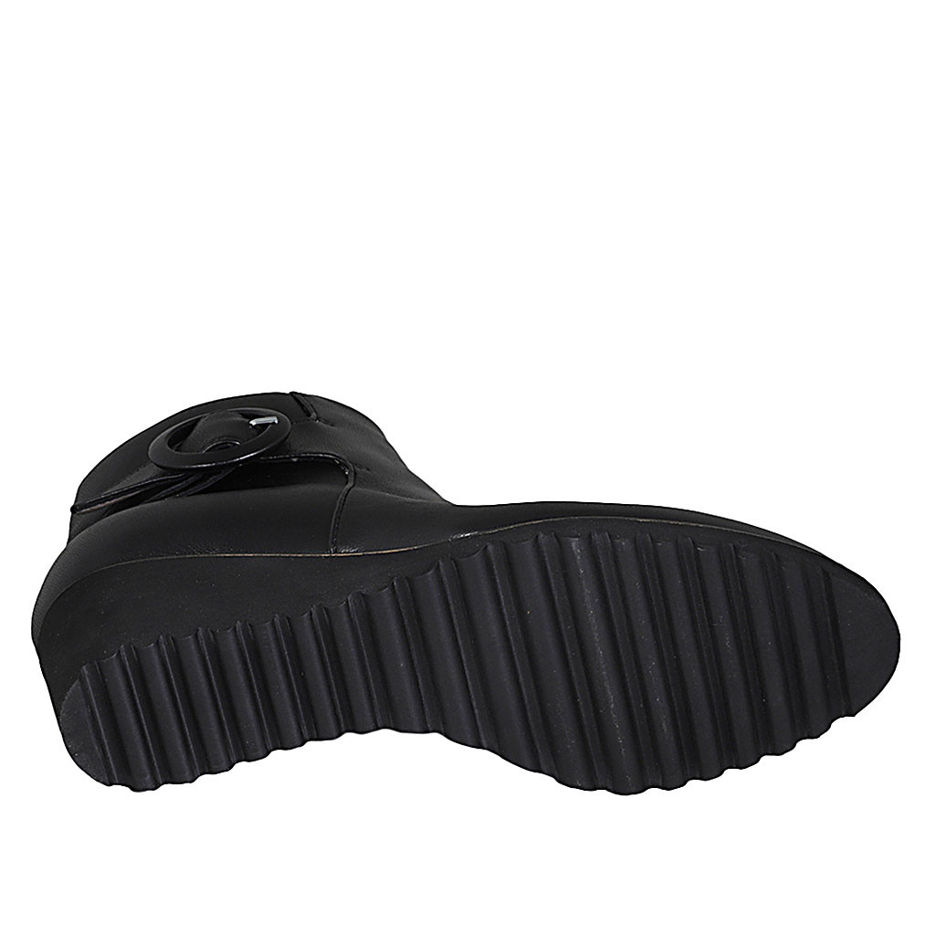 Stivaletto da donna con cerniera e fibbia in pelle nera zeppa 6 - Misure disponibili: 42